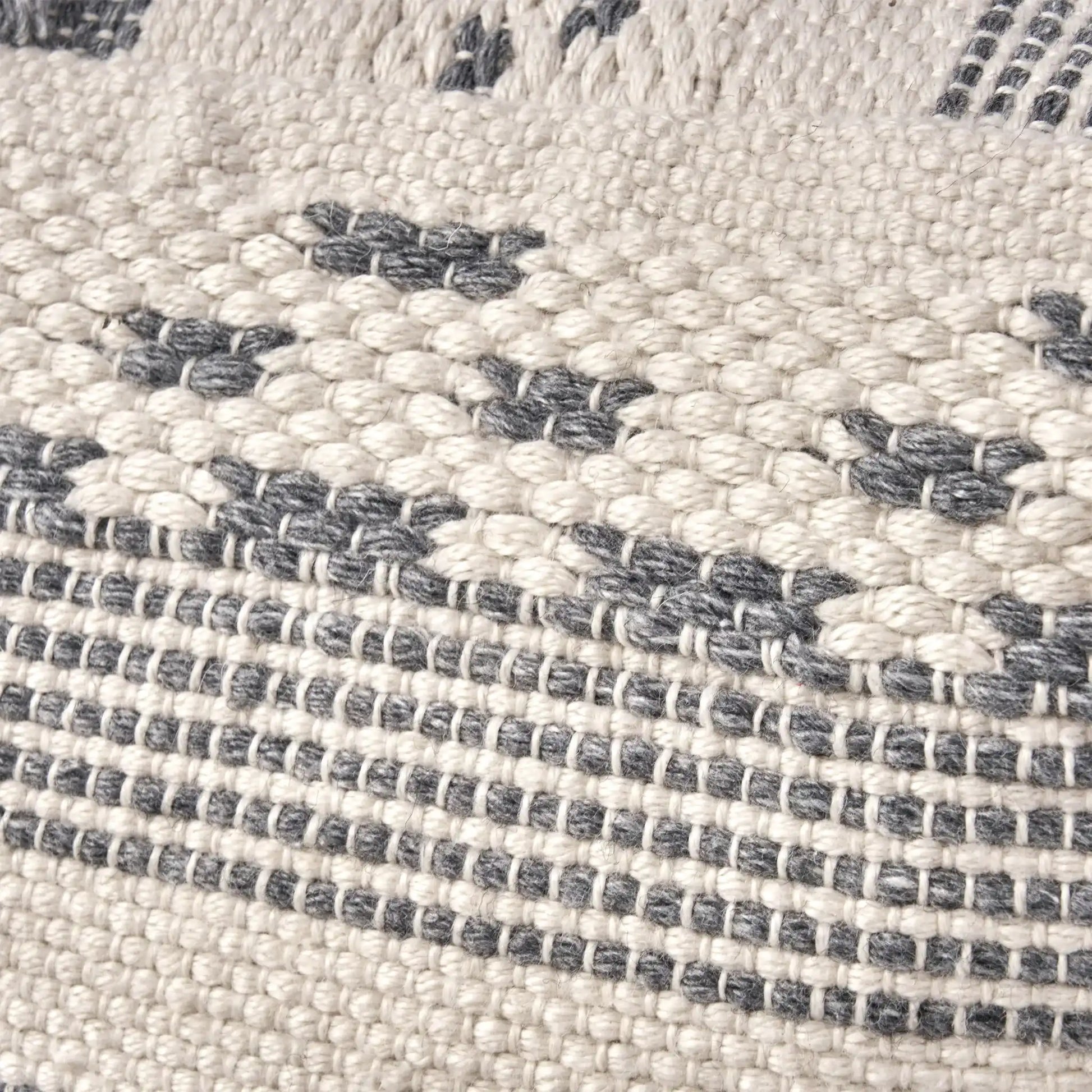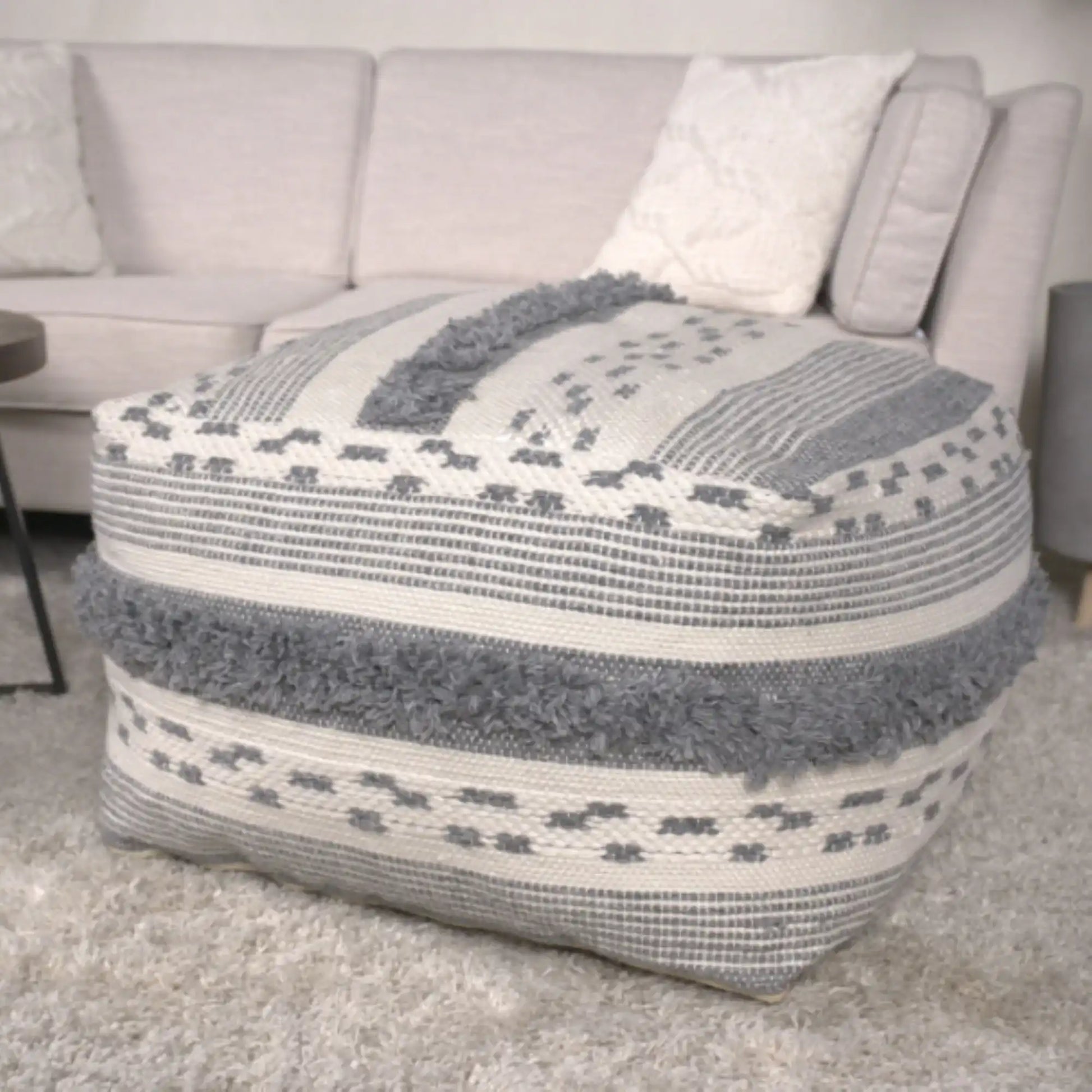 Karim - Faux Yarn Large Pouf, Durable - Ivory / Gray
