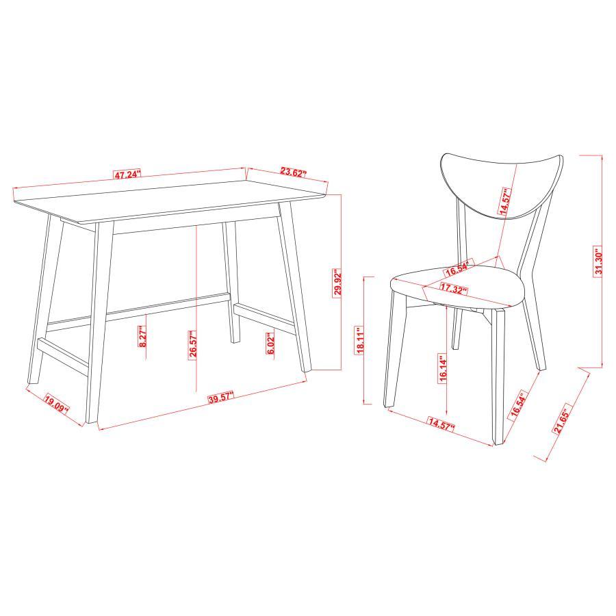 Make this two-piece desk set work for your home space. Styled to maintain a low profile, it's functional and fashionable. Solid hardwood is among materials used to shape a slightly retro-shape desk with slant legs. A mid-century modern flavor also makes the chair a delightful choice. A cool walnut finish is both versatile and beautiful, and a grey leatherette upholstered seat adds an enticing element to the chair.