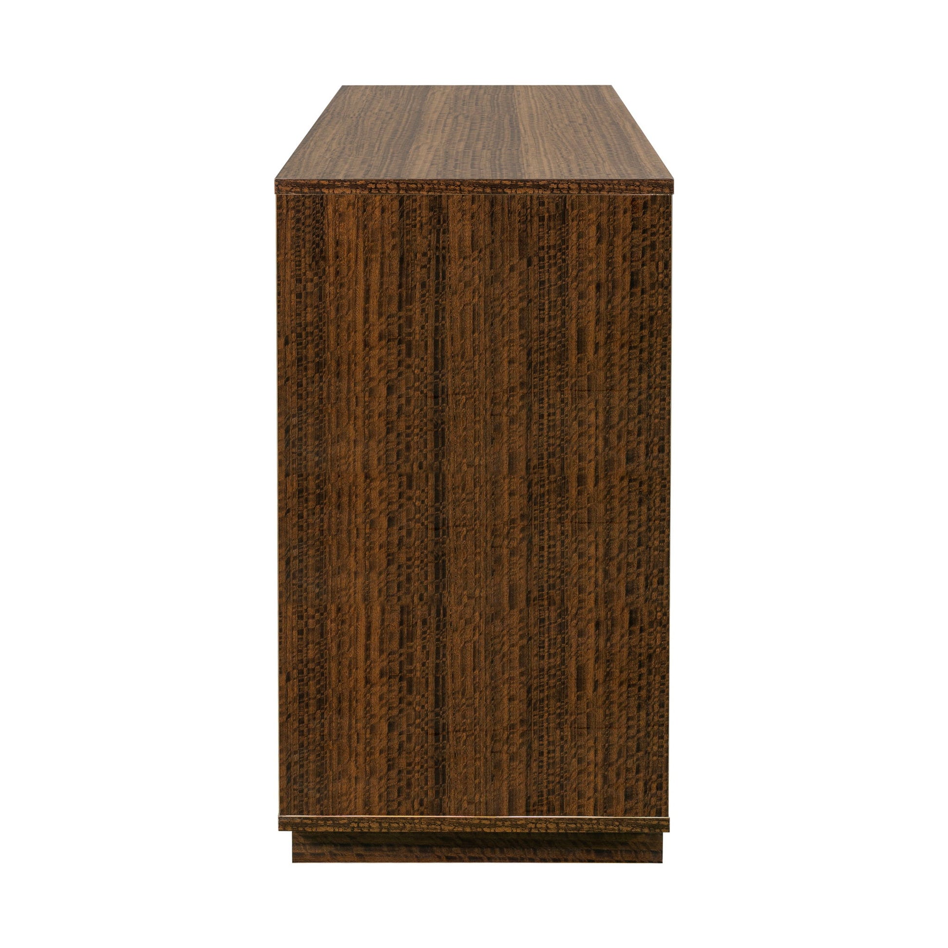 The Kayner Dresser brings a quiet, architectural grandeur to the room—its long, refined silhouette wrapped in a moody dialogue of shadowed charcoal and glossy walnut sheen. Angled drawer fronts cut across the façade like tailored seams, creating a subtle, sculptural rhythm that shifts beautifully with the light. Soft illumination greets you as the top drawers glide open, while a hidden compartment nestled beneath a velvet-lined tray offers a private sanctuary for your most personal pieces.