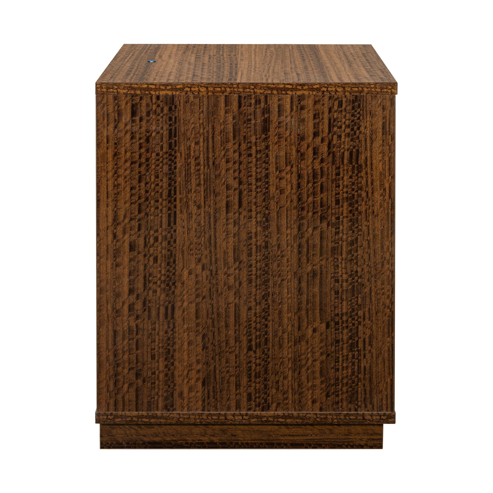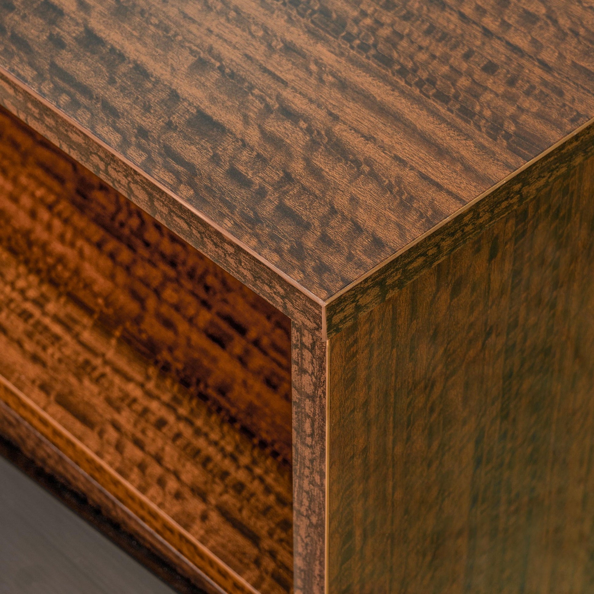 The Kayner Nightstand offers a quiet, architectural drama to the bedside—a study in shadow, sheen, and refined contrast. Its angled charcoal drawer front cuts a sculptural line across the silhouette, while the high-gloss walnut interior glows with a warm, lacquered radiance.