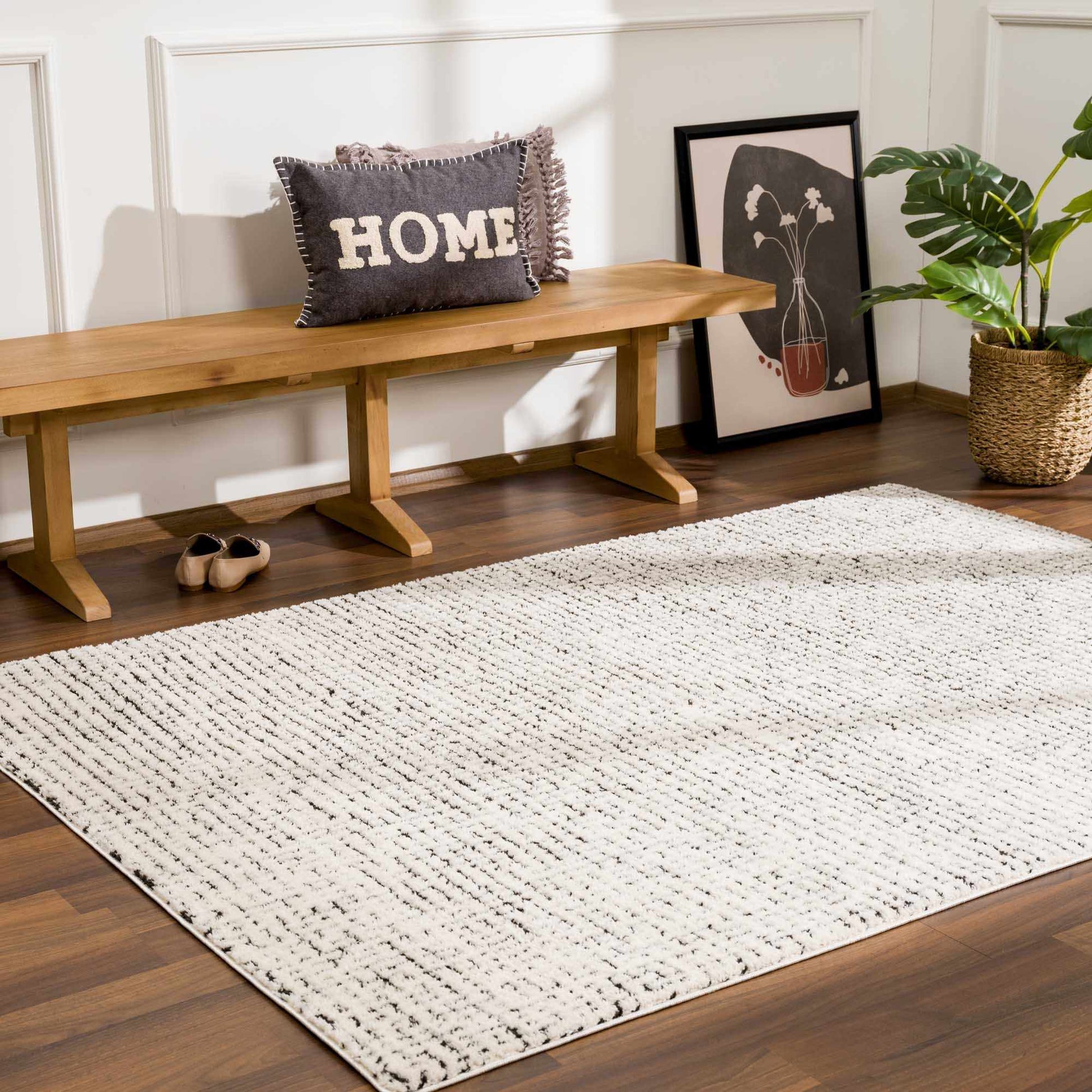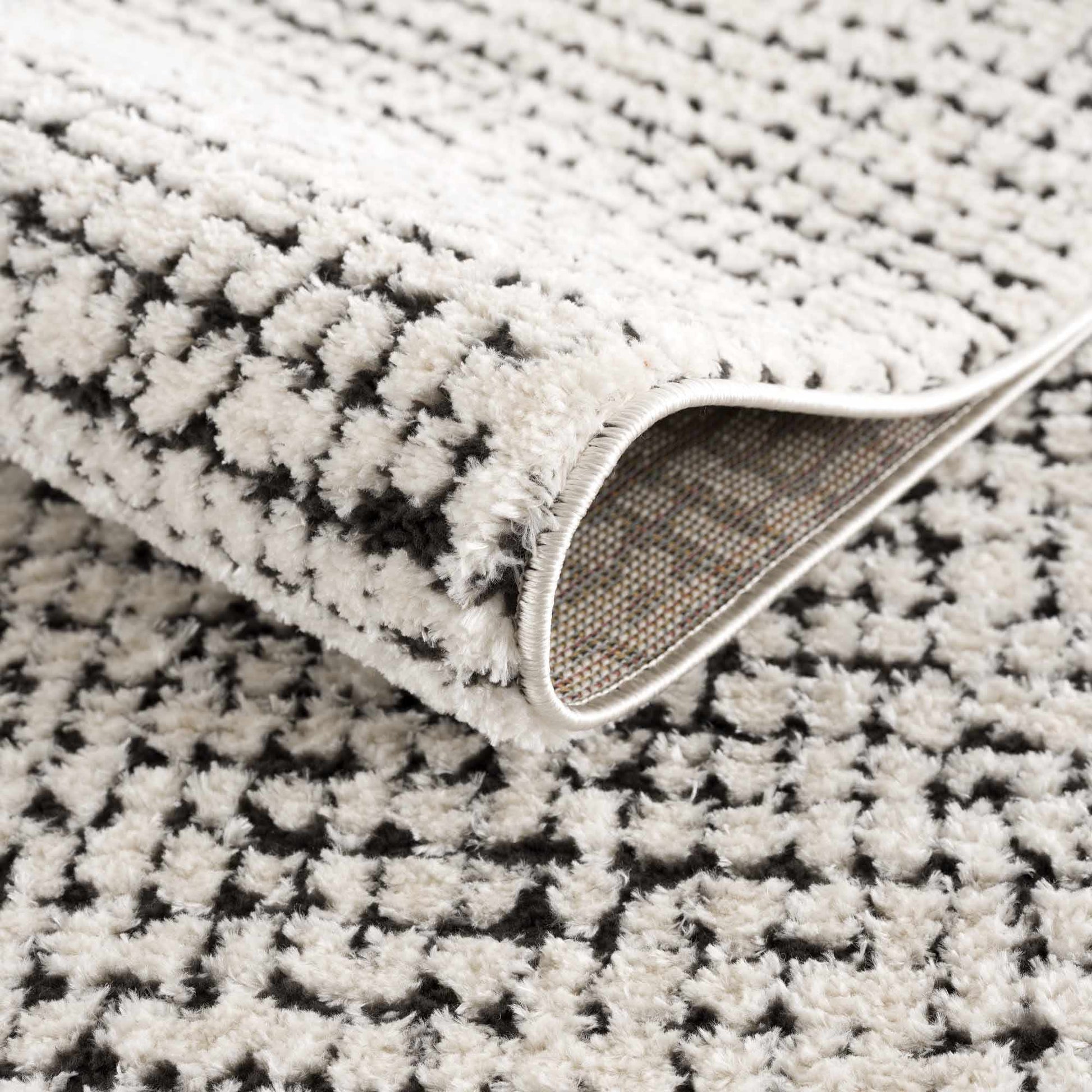 Keita Cream & Black Grid Plush Rug