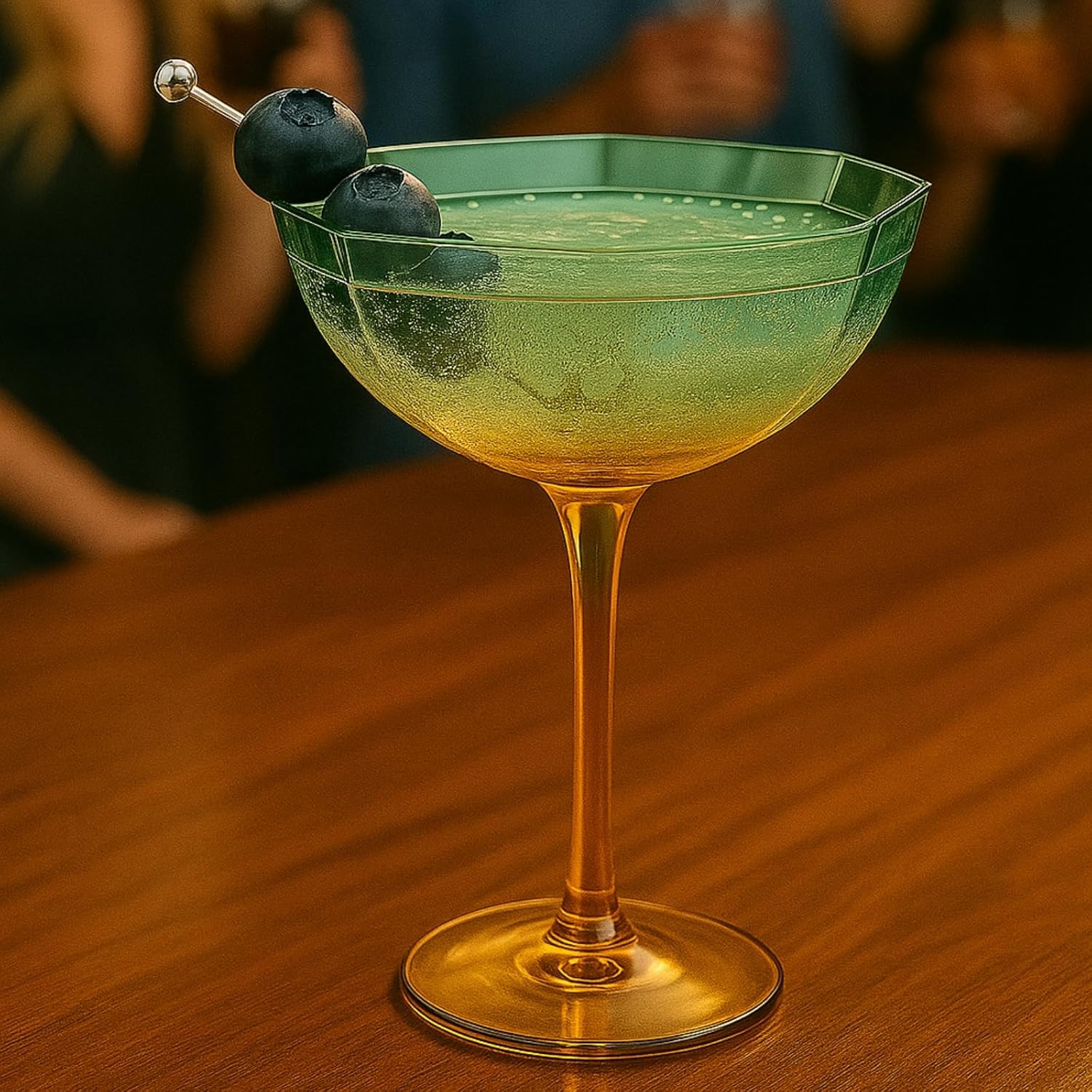 Add artistic flair to your glassware collection with this hexagonal teal and brown coupe glasses set, crafted for elegance and durability. Featuring a modern shape and festive color palette, these break resistant glasses are perfect for champagne, cocktails, and celebration drinks. Ideal for weddings, anniversaries, or holiday parties, they serve as both functional drinkware and decorative tableware. The wide bowl and balanced stem offer a refined barware experience, making them a standout in any kitchen or modern setting. Durable and dishwasher safe, they combine everyday convenience with aesthetic appeal. A unique and collectible gift for any special occasion, this stemware set brings timeless sophistication to every toast.
