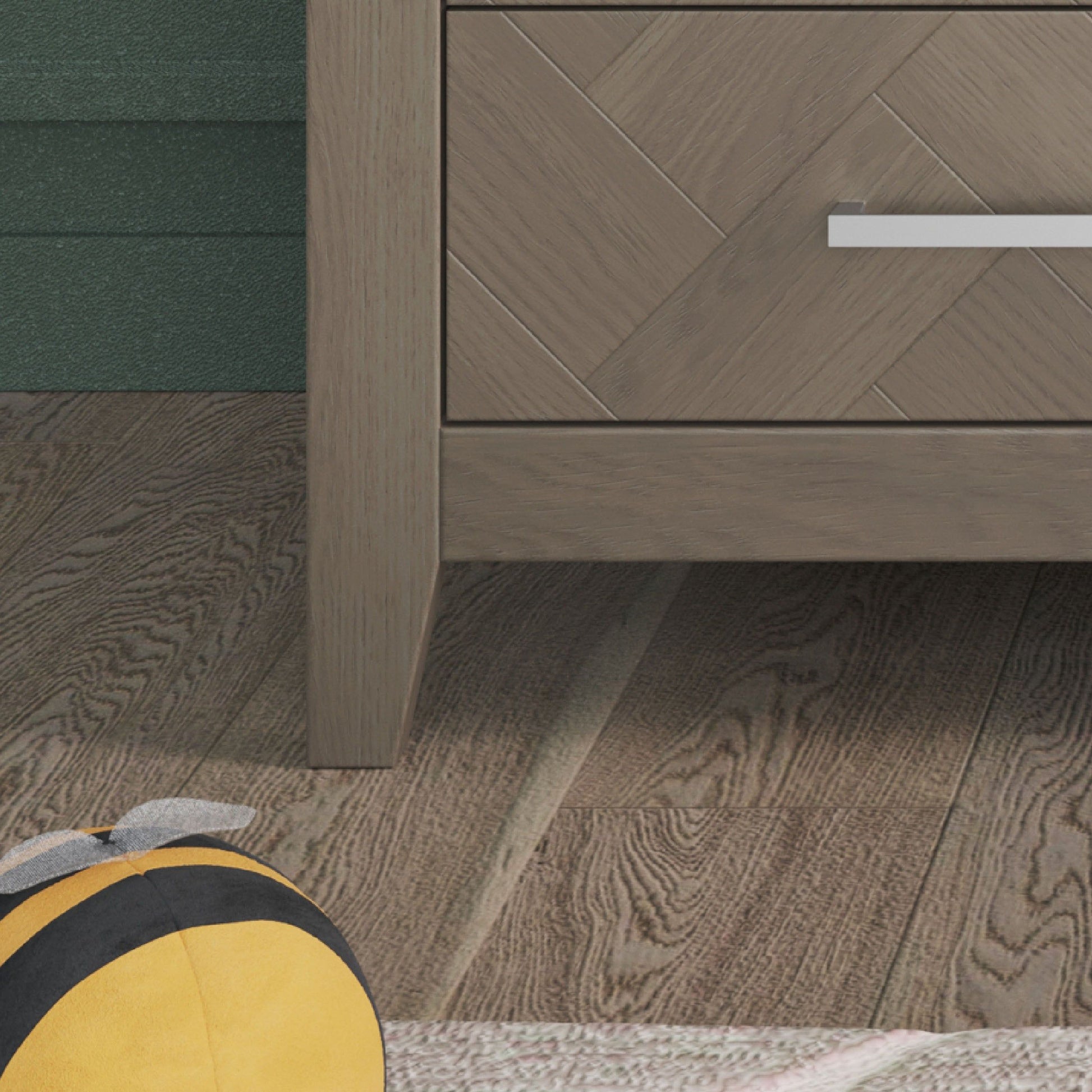 Elevate your nursery with the enchanting Kieran 3PC Nursery Set from Halo Sleep, a harmonious blend of transitional and modern design elements. Featuring a captivating herringbone pattern on the sideboards and enhanced by thoughtful mitered corners and tapered legs, this collection exudes sophistication. Each piece—from the 3-in-1 Convertible Crib to the 6-drawer double dresser and 4-drawer chest—reflects meticulous craftsmanship, ensuring both aesthetic appeal and durability. Available in two refined finishes, the set is designed to complement various interior styles, providing timeless elegance for your child's space.