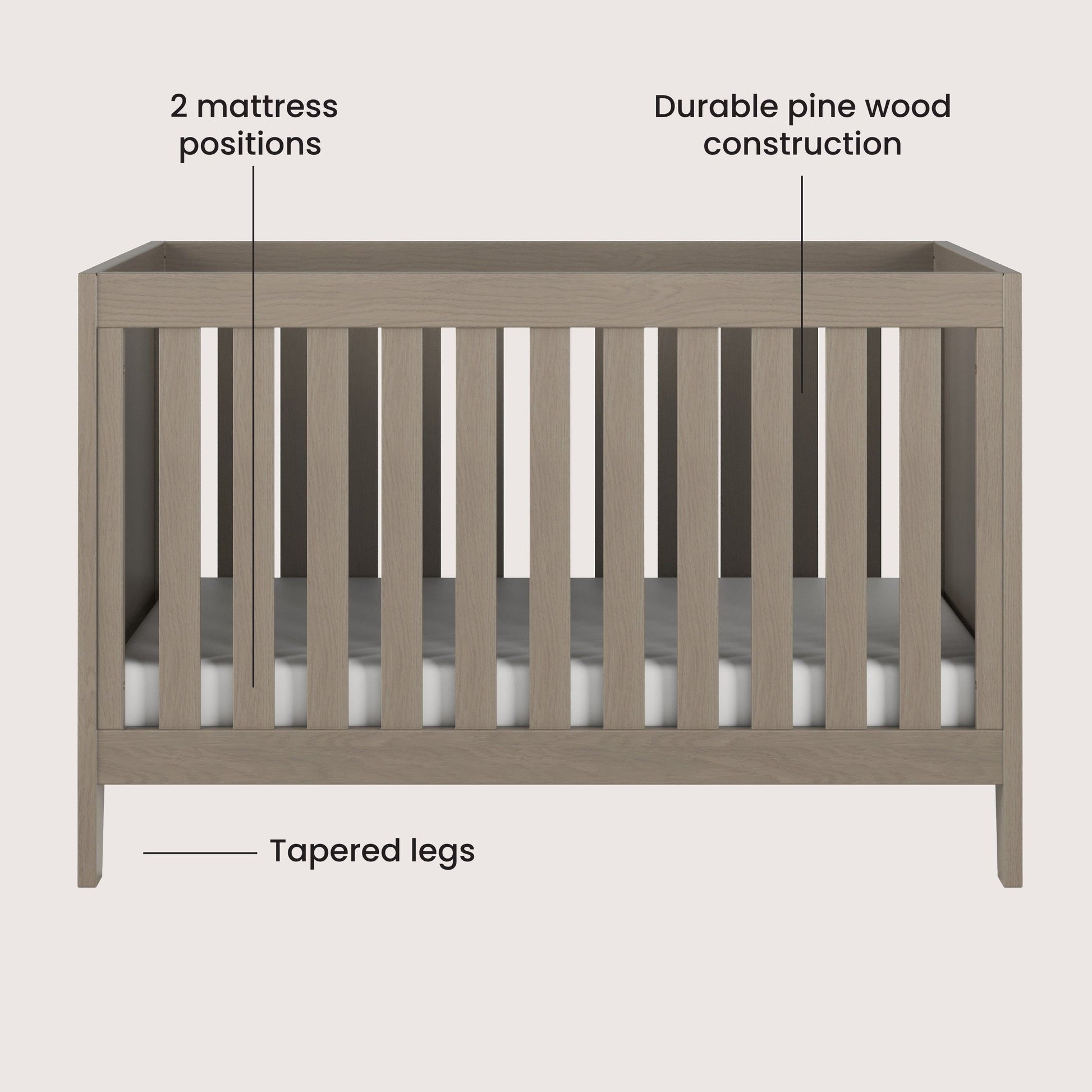 - Available in two non-toxic, baby-safe finishes: Toasted Chestnut and Crescent Gray