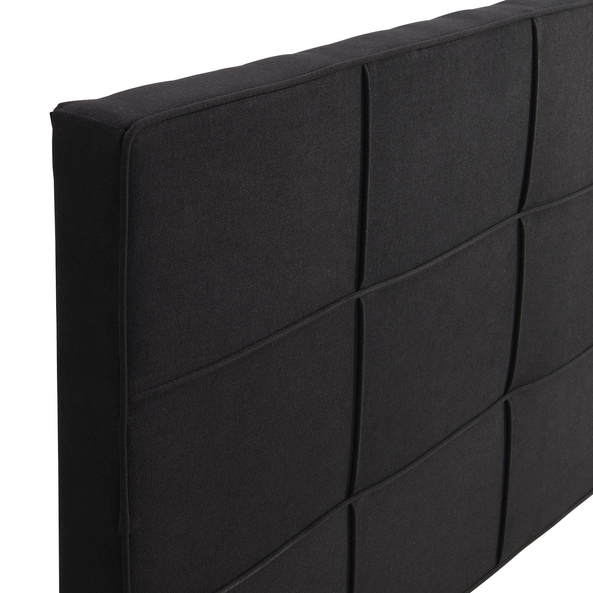 King Size Upholstered Platform Bed Frame With Linen Fabric Headboard, Wood Slat Support - Black