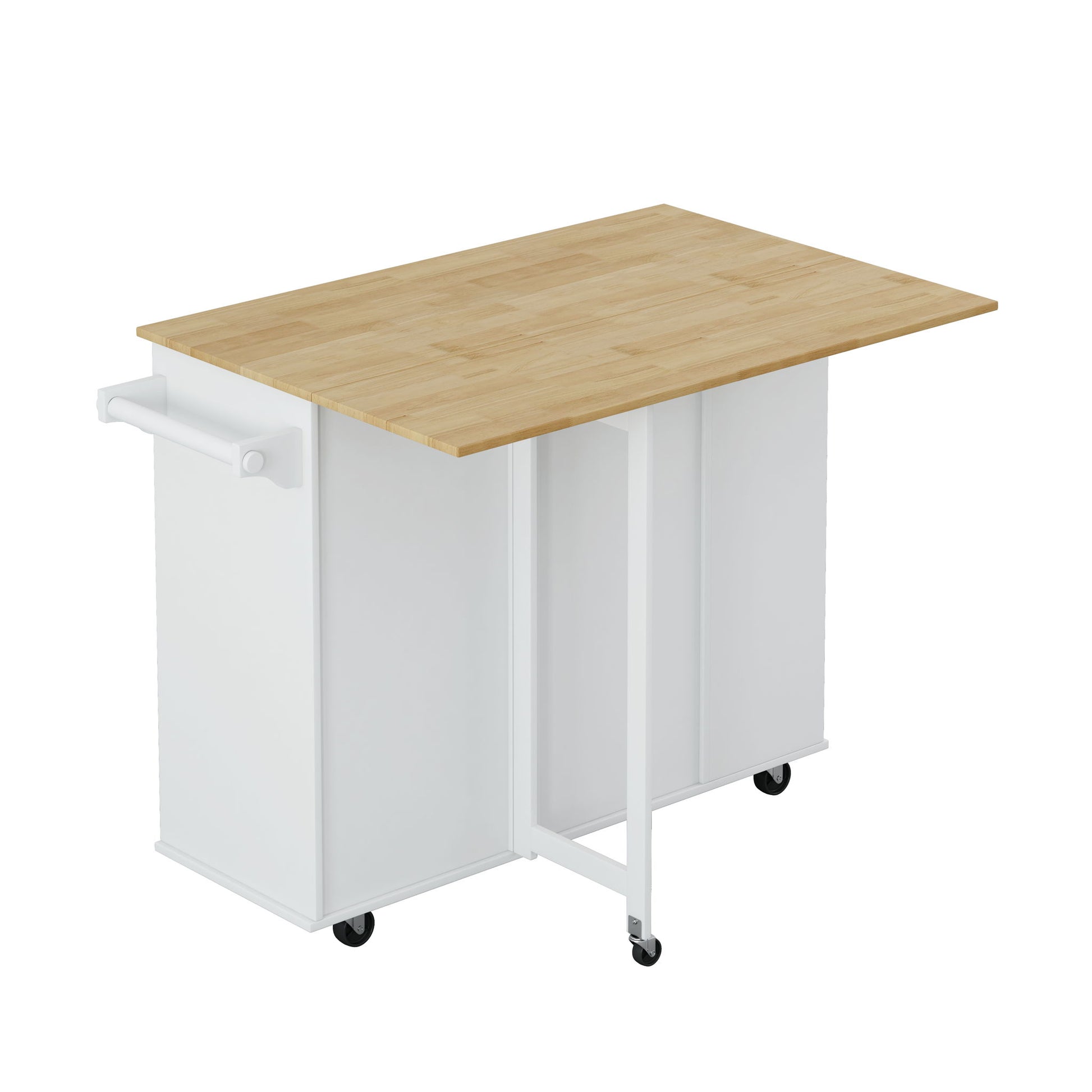 Kitchen Island Cart With 2 Door Cabinet, 2 Drawers, Spice Rack, Towel Holder, Wine Rack, And Foldable Top - White