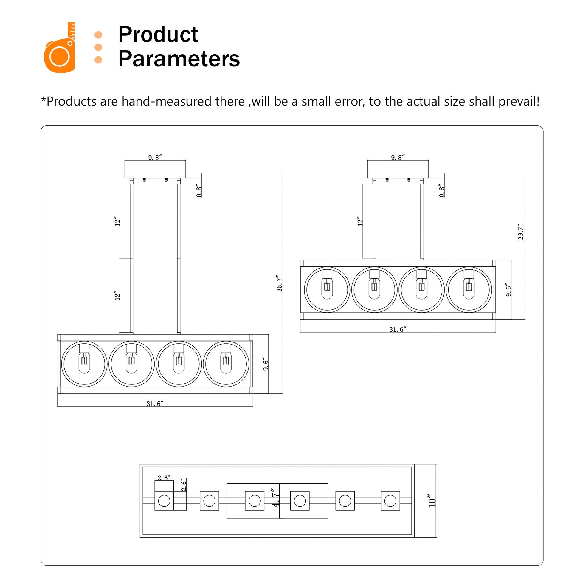 - Bulb Compatibility - It accommodates 4 E26 bulbs, with a recommended maximum power of 25W per bulb. Note that bulbs are not included with the purchase.