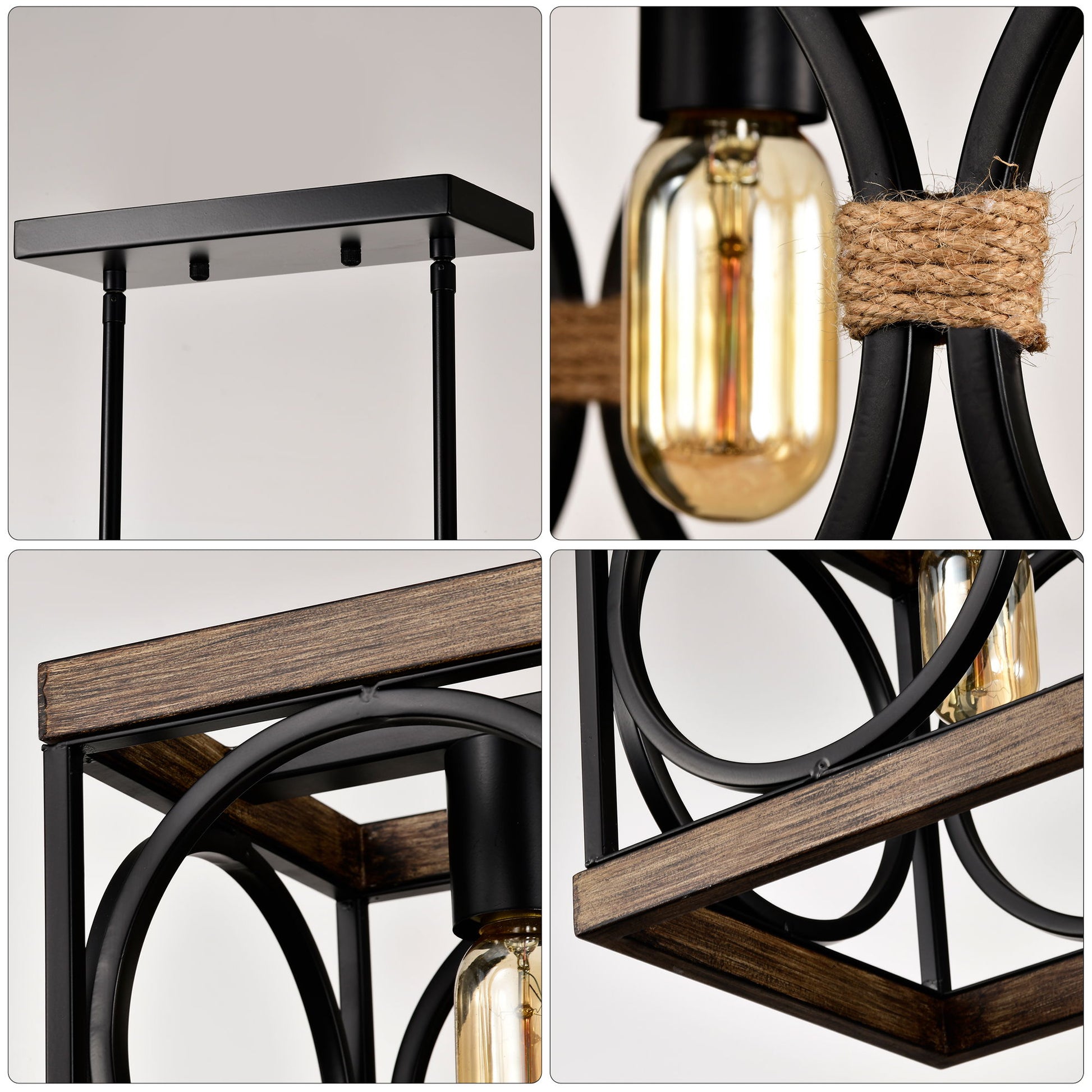 - Stunning Design - This dining room light fixture boasts a sophisticated blend of a matte black metal frame and wood finish, embodying a modern style. When illuminated, it creates a fancy and shimmering atmosphere in your space.