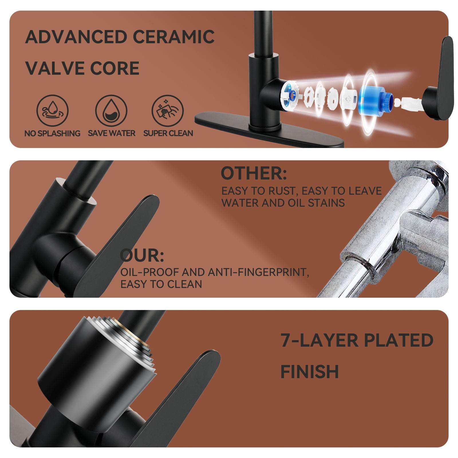 - 360° Swivel Pull-Down Sprayer: Provides full sink coverage and flexible reach for cleaning large pots and pans.