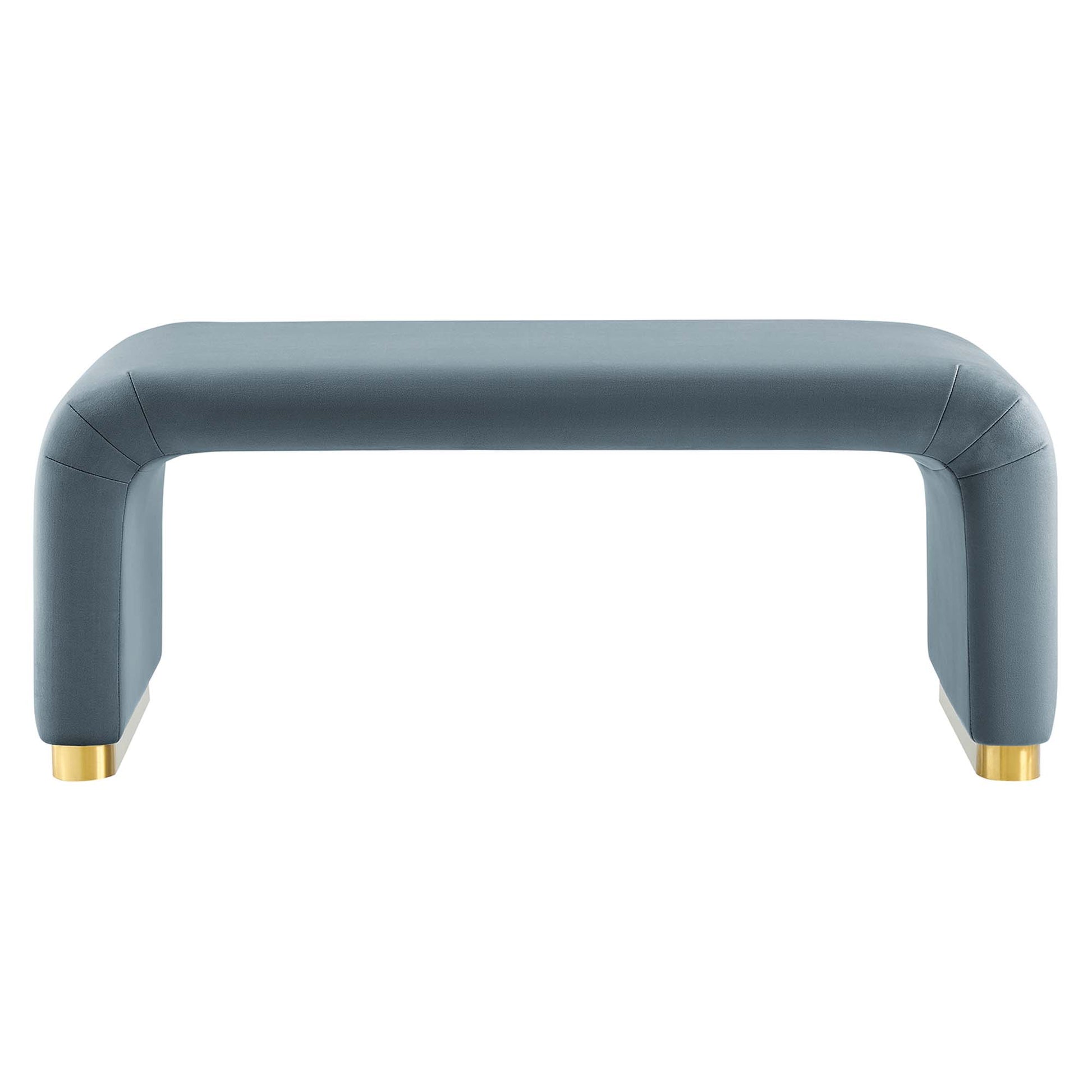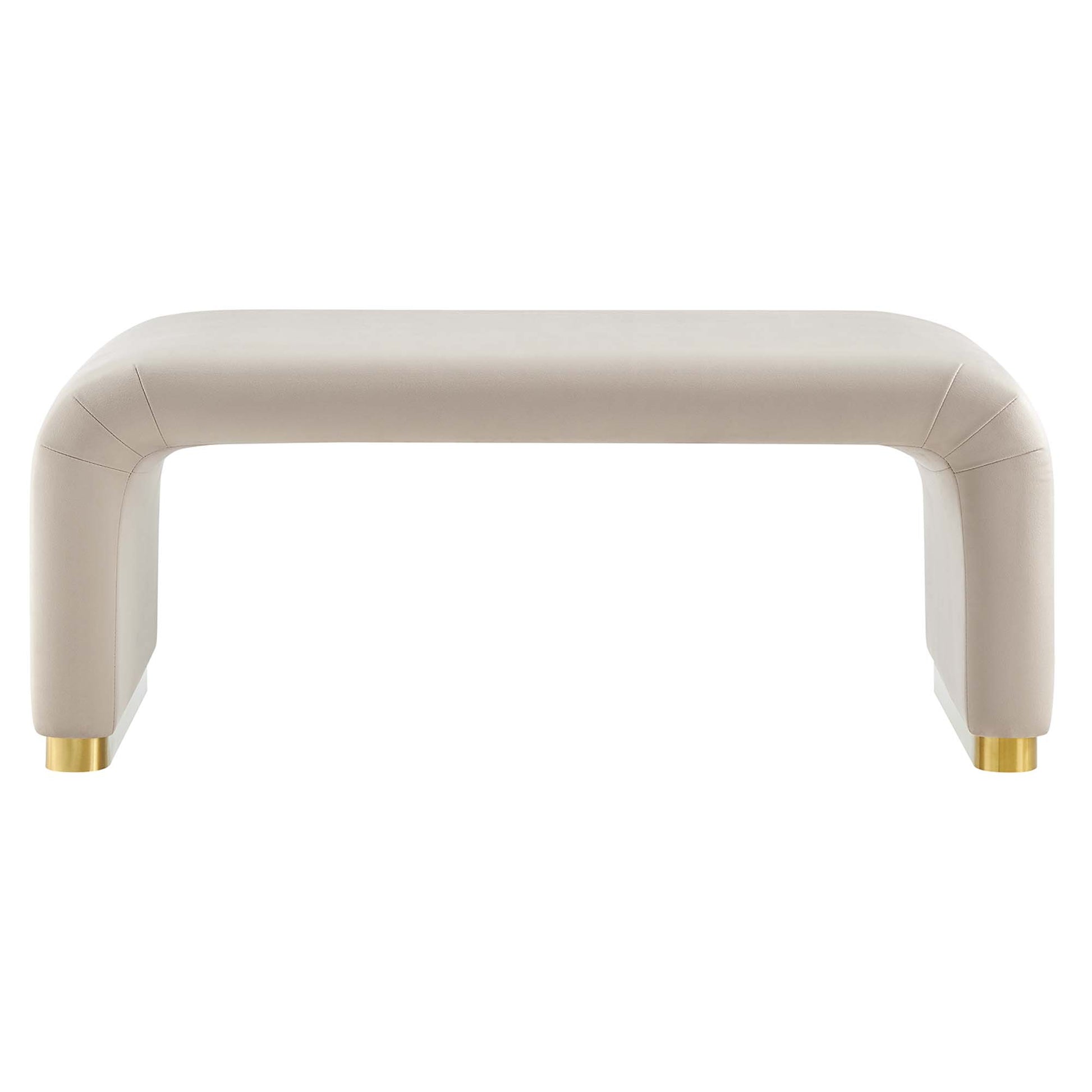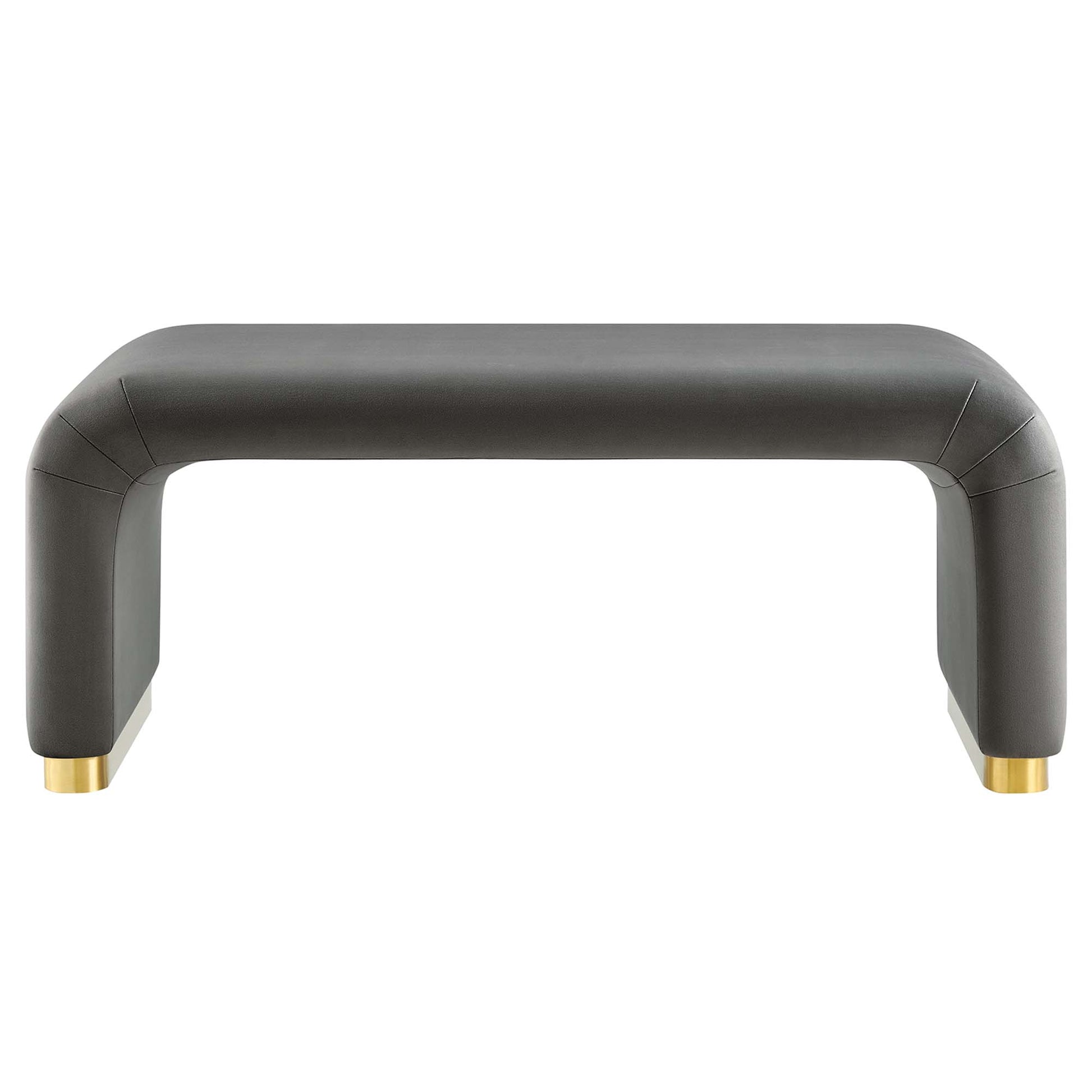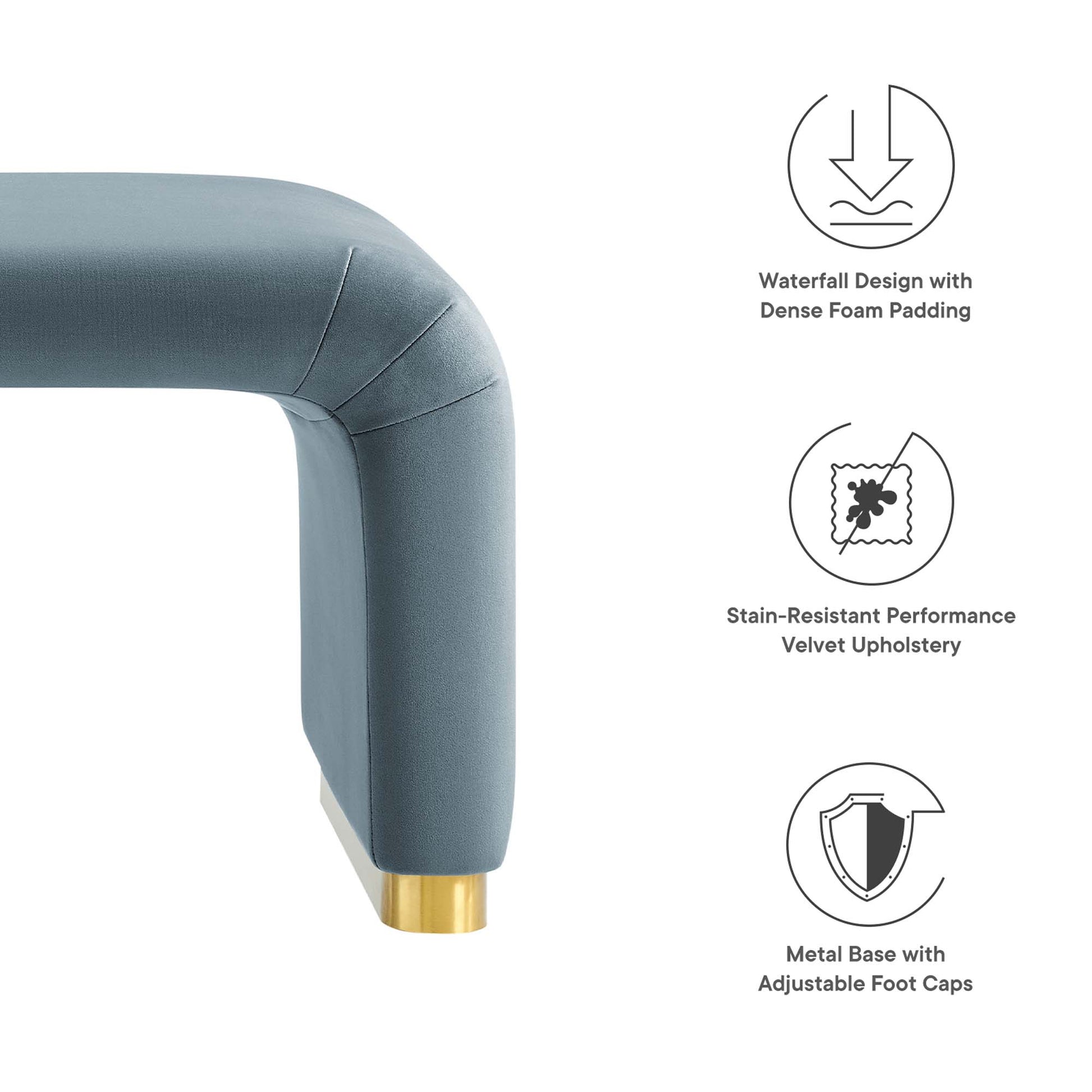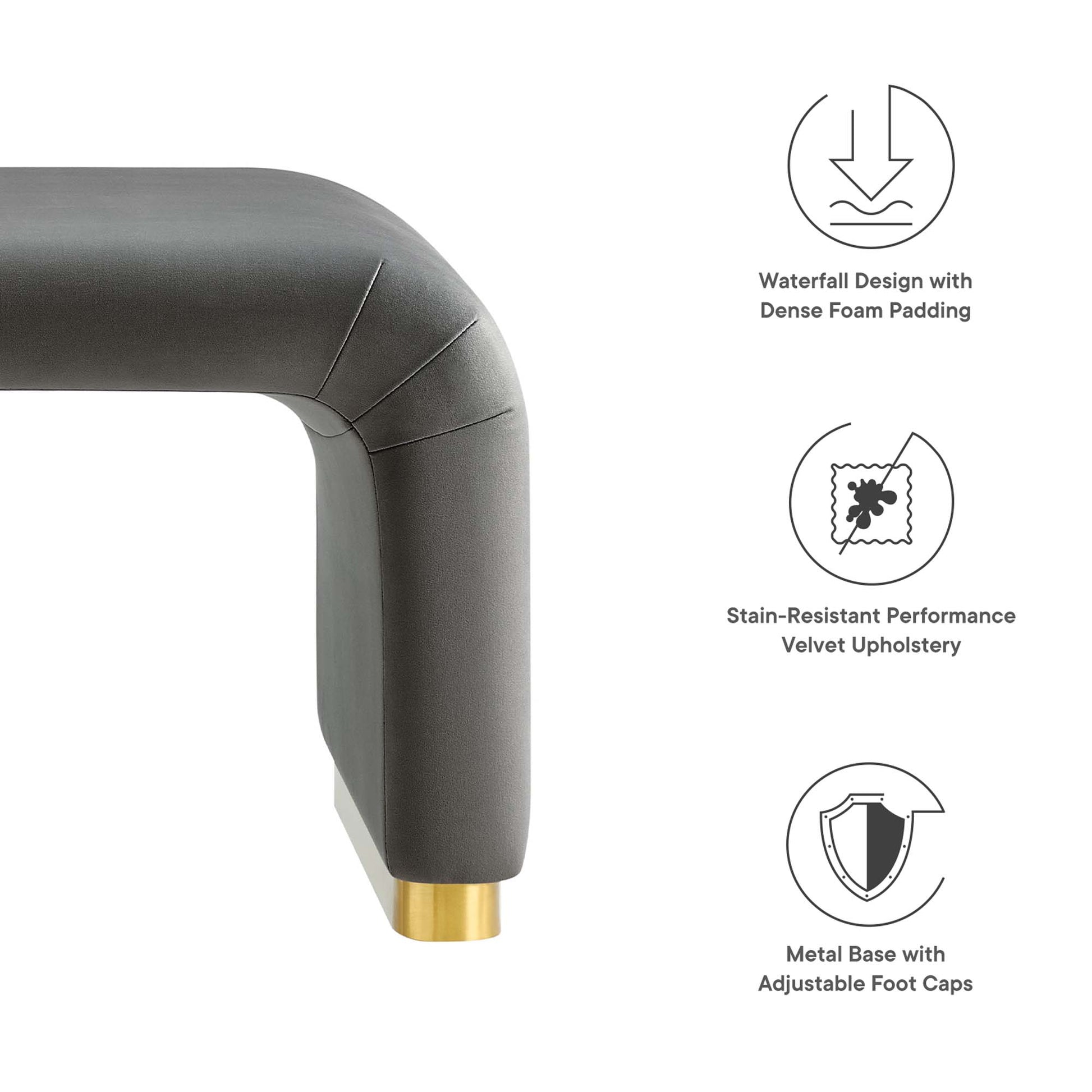 Let the Koda Performance Velvet Ottoman redefine your space with its style and adaptability. Crafted with a sturdy plywood frame, this large ottoman exudes a soft and flowing silhouette. Koda features stain-resistant performance velvet upholstery and a unique waterfall design. This multifunctional piece serves as both a chic ottoman and a fashionable coffee table, effortlessly blending classic design elements with a touch of contemporary allure. The dense foam padding ensures a comfortable experience, whether as extra seating, a footrest, or a stylish surface in your living room or lounge area. The Koda Upholstered Ottoman stands elegantly on a solid metal base with non-marking adjustable foot caps, ensuring stability while protecting your flooring. Assembly Required. Weight Capacity: 662 lbs.