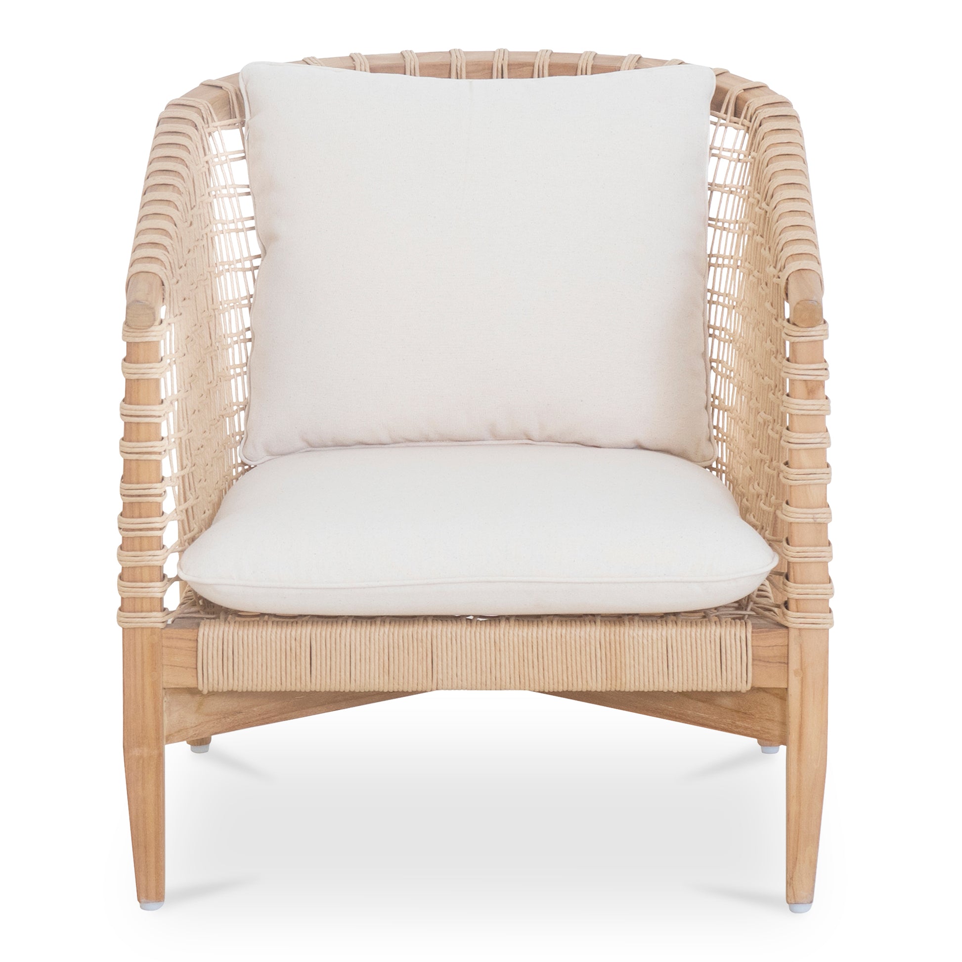 Named in tribute to the skilled weavers of Panama, Kuna showcases the traditional Lloyd Loom technique set against a contemporary teak wood frame. Over time, this gorgeous wood turns into a darker patina which looks all the more stunning contrasted against the clean white fabric upholstery of this versatile design. Easy-to-wash removable cushions keep this outdoor lounge chair bright, beautiful and ready for the sun.