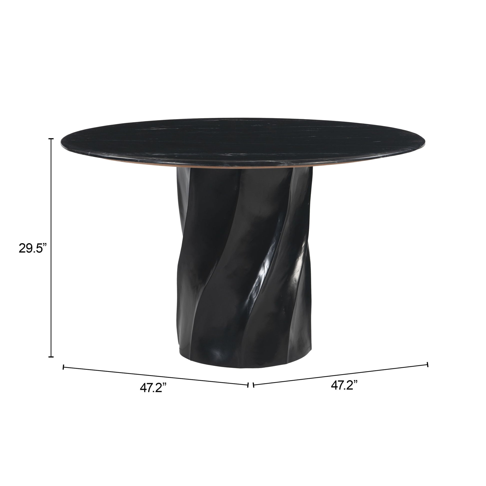 The Kuro Dining Table in Black brings a bold, modern aesthetic to indoor dining spaces. Crafted from marble, MDF, and mango wood, this dining table offers durability and style. Its sleek black finish makes it a perfect fit for contemporary residential or hospitality environments, serving as an eye-catching centerpiece in dining rooms.
