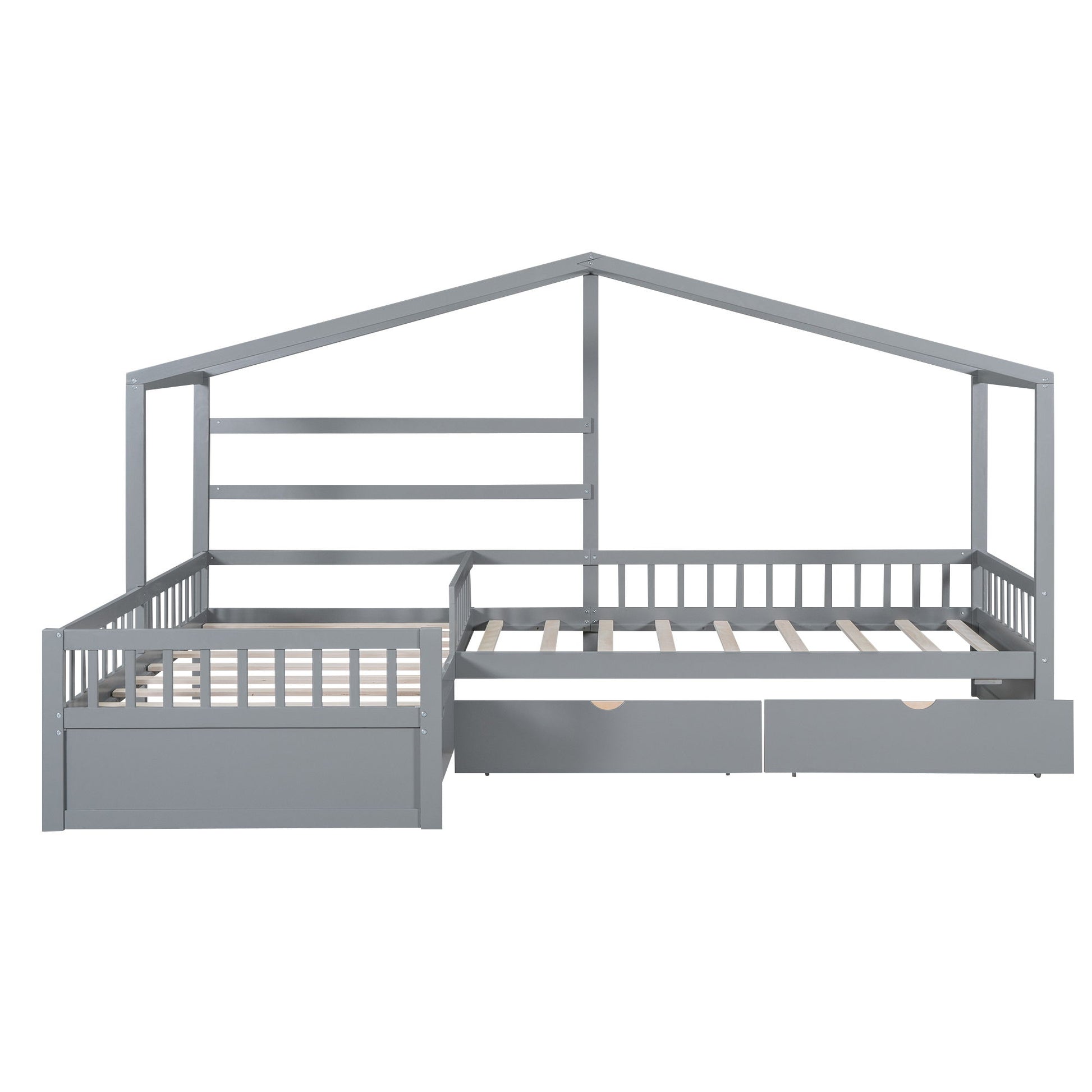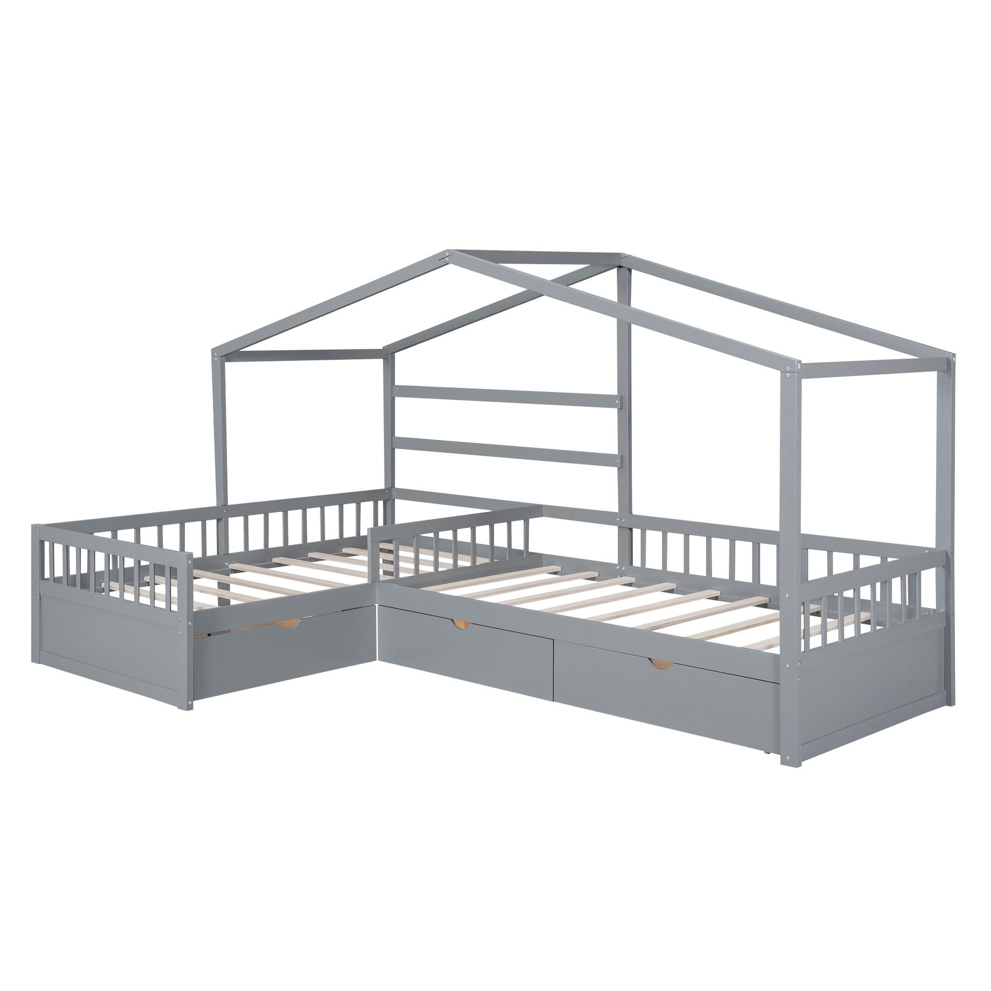 L-Shape Twin Platform Bed With 3 Storage Drawers - Gray