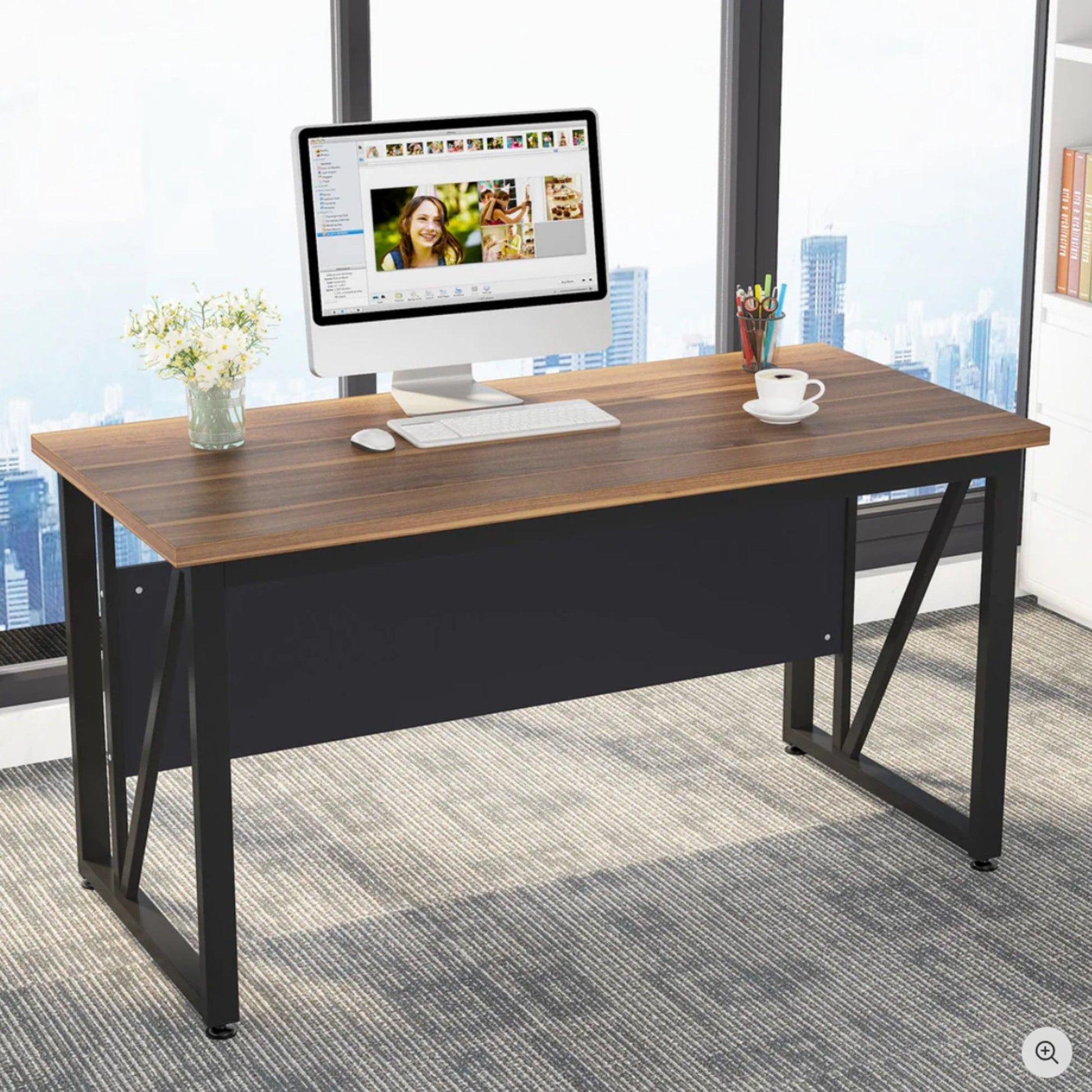 - Modern Aesthetic: Walnut and black finish delivers a sleek, contemporary look that fits seamlessly into any office or home environment.