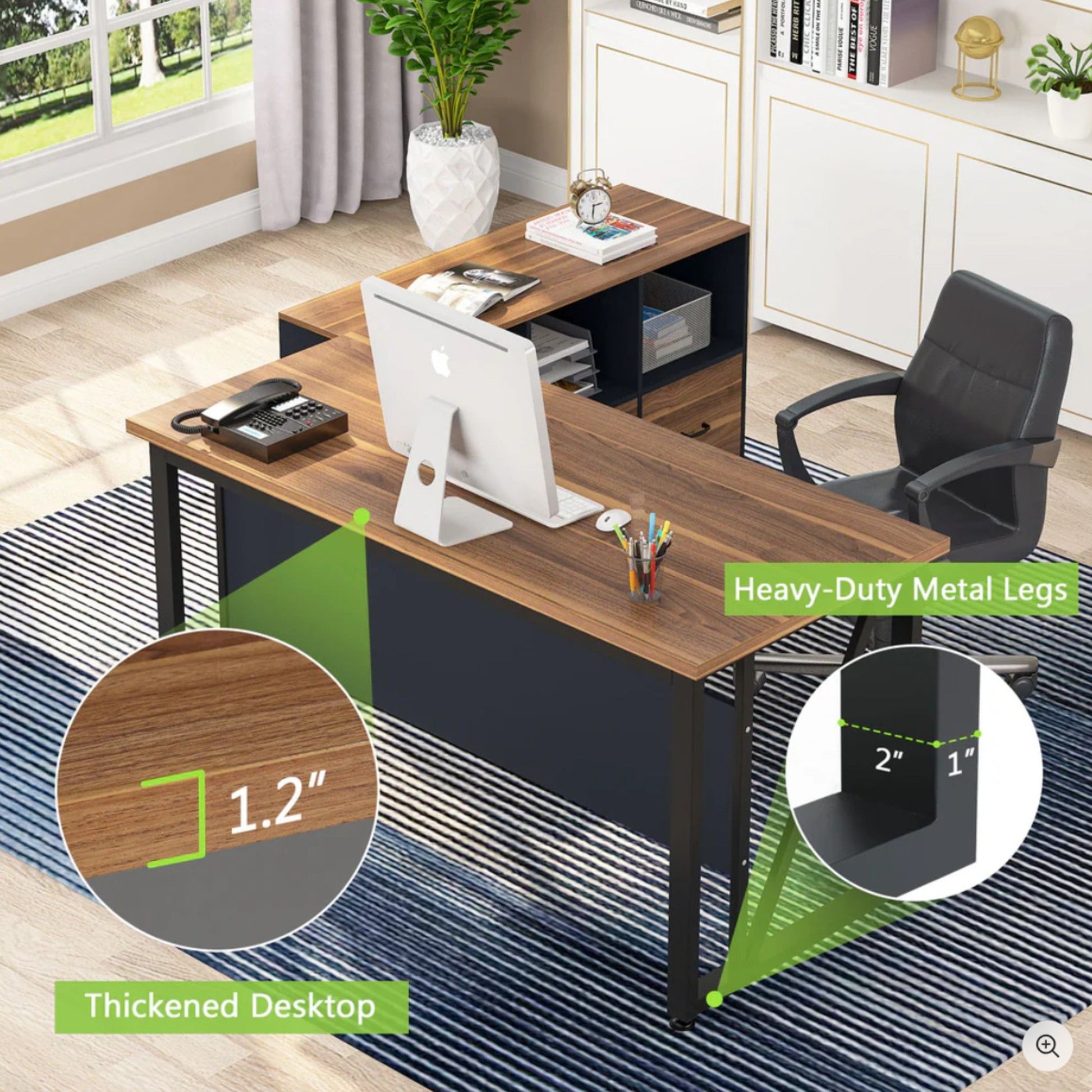 - Complete Home Office Set: Combines a 63-inch L-shaped desk with a 47-inch mobile file cabinet for a unified workspace that maximizes organization and efficiency.