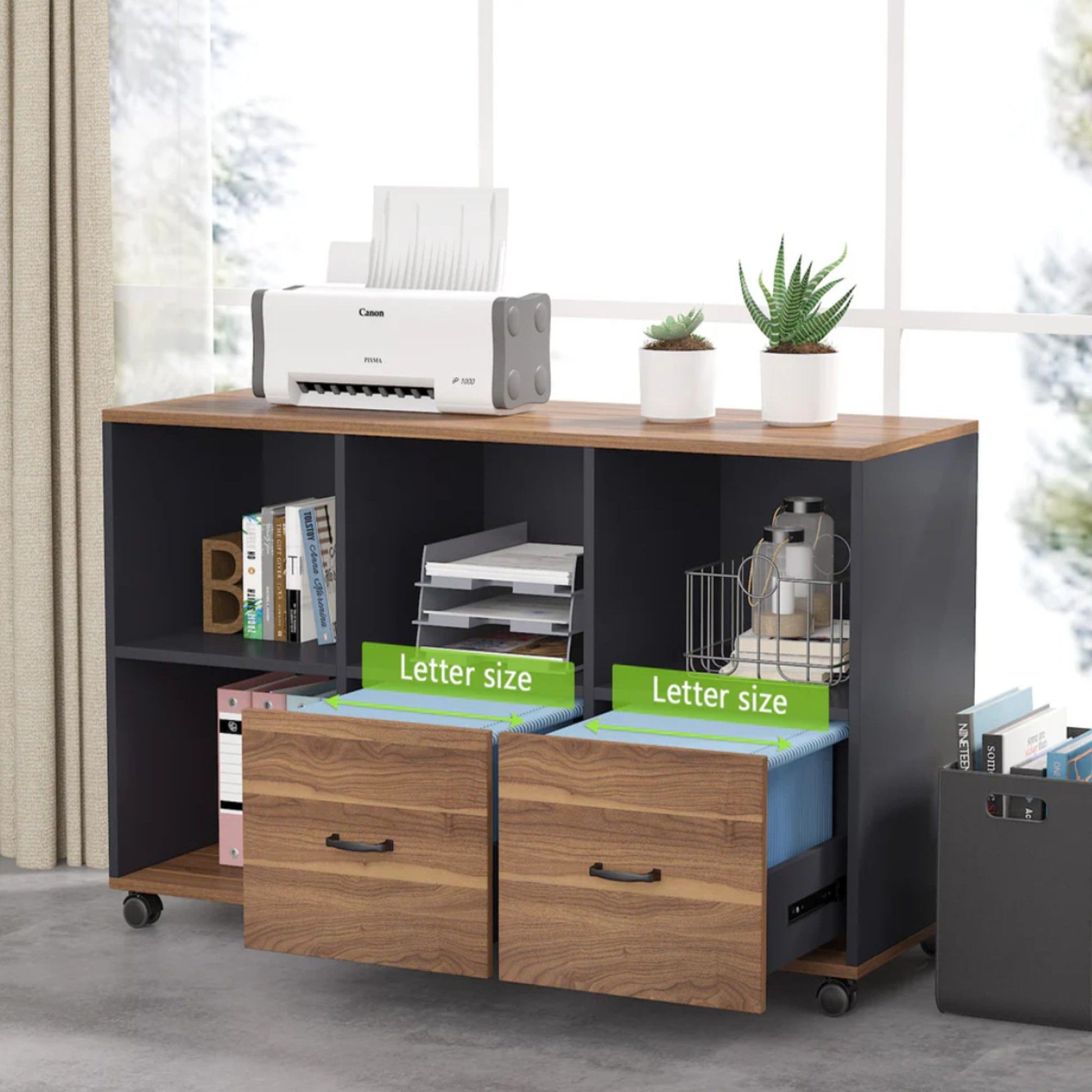 - Smart Storage Design: Includes two letter-sized file drawers and four open compartments for easy access to documents and supplies.