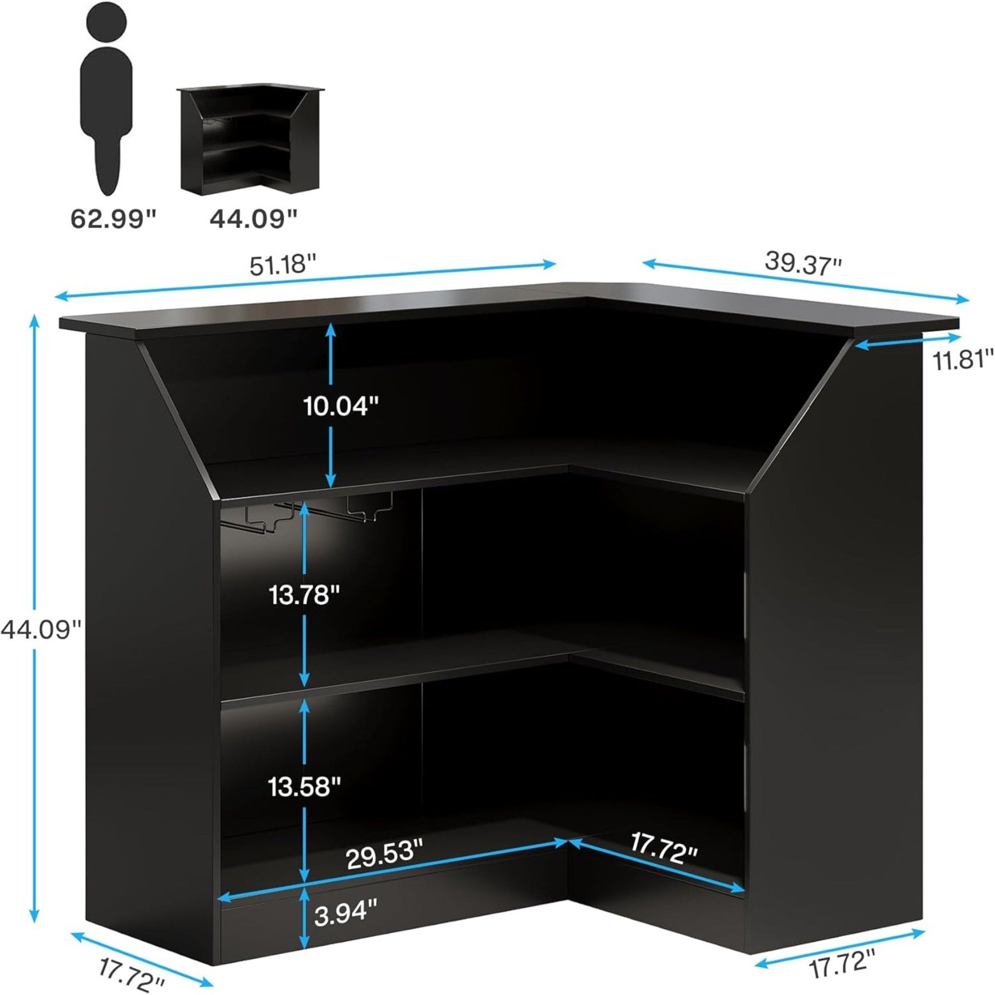 L-Shaped Home Bar Cabinet With Stemware Racks, 4 Tier Corner Unit, Liquor Wine Bar Table & Reception Desk For Home Pub - Black