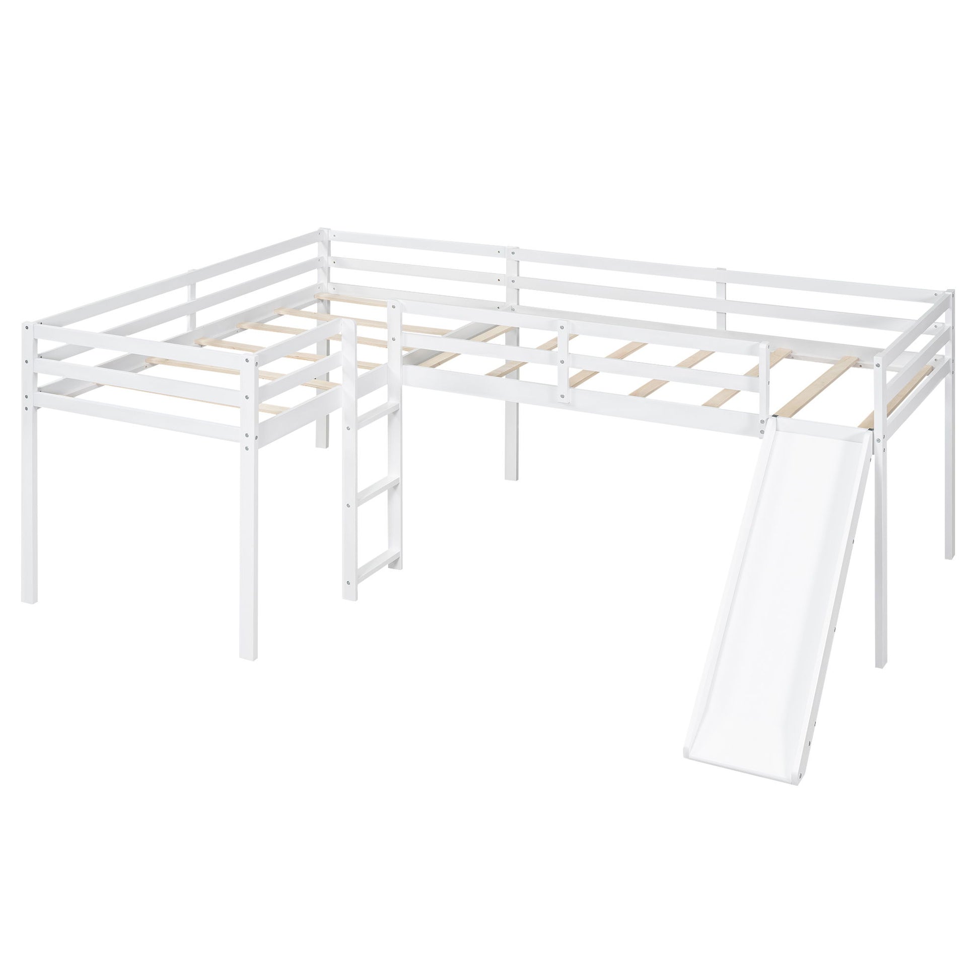 L-Shaped Twin Size Loft Bed With Ladder And Slide - White