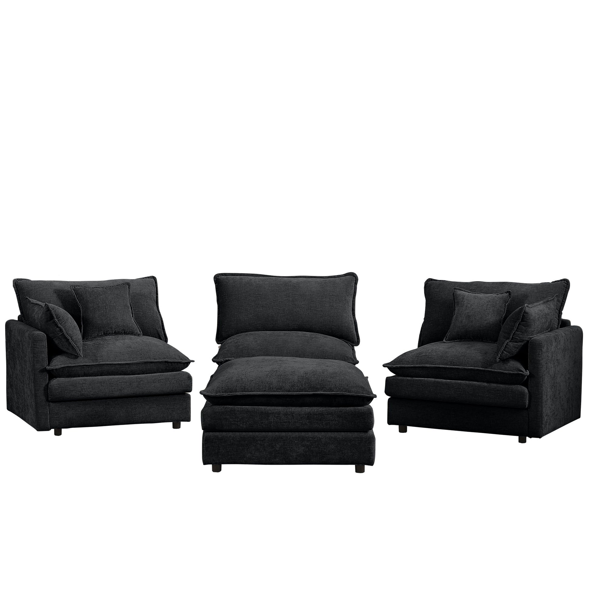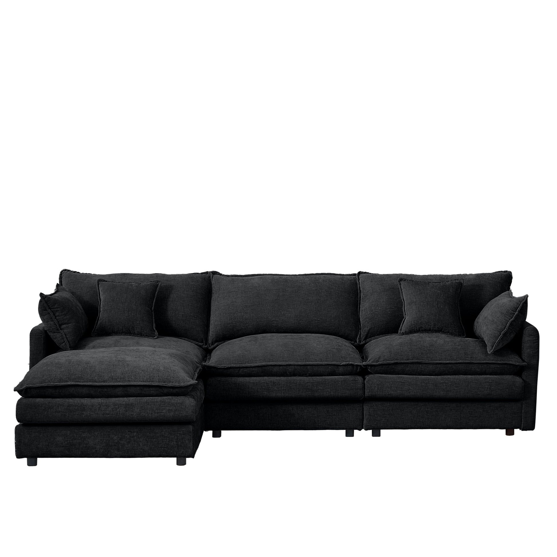 Modular L-Shaped Sectional Sofa, 3 Seater Cloud Couch & Movable Ottoman - Black