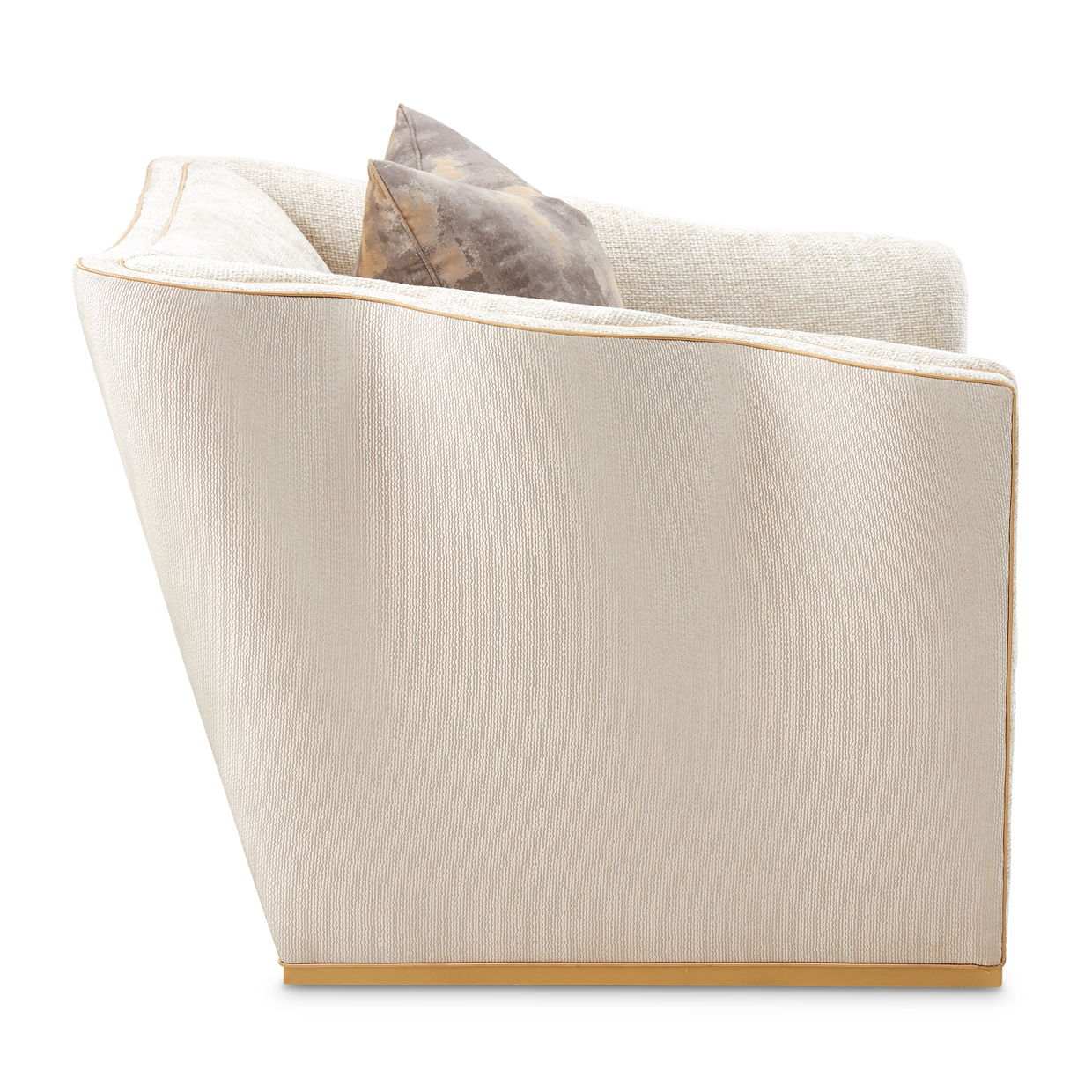 - Seating area wrapped in plush Cappuccino jacquard chenille, complemented by a woven jacquard exterior.
