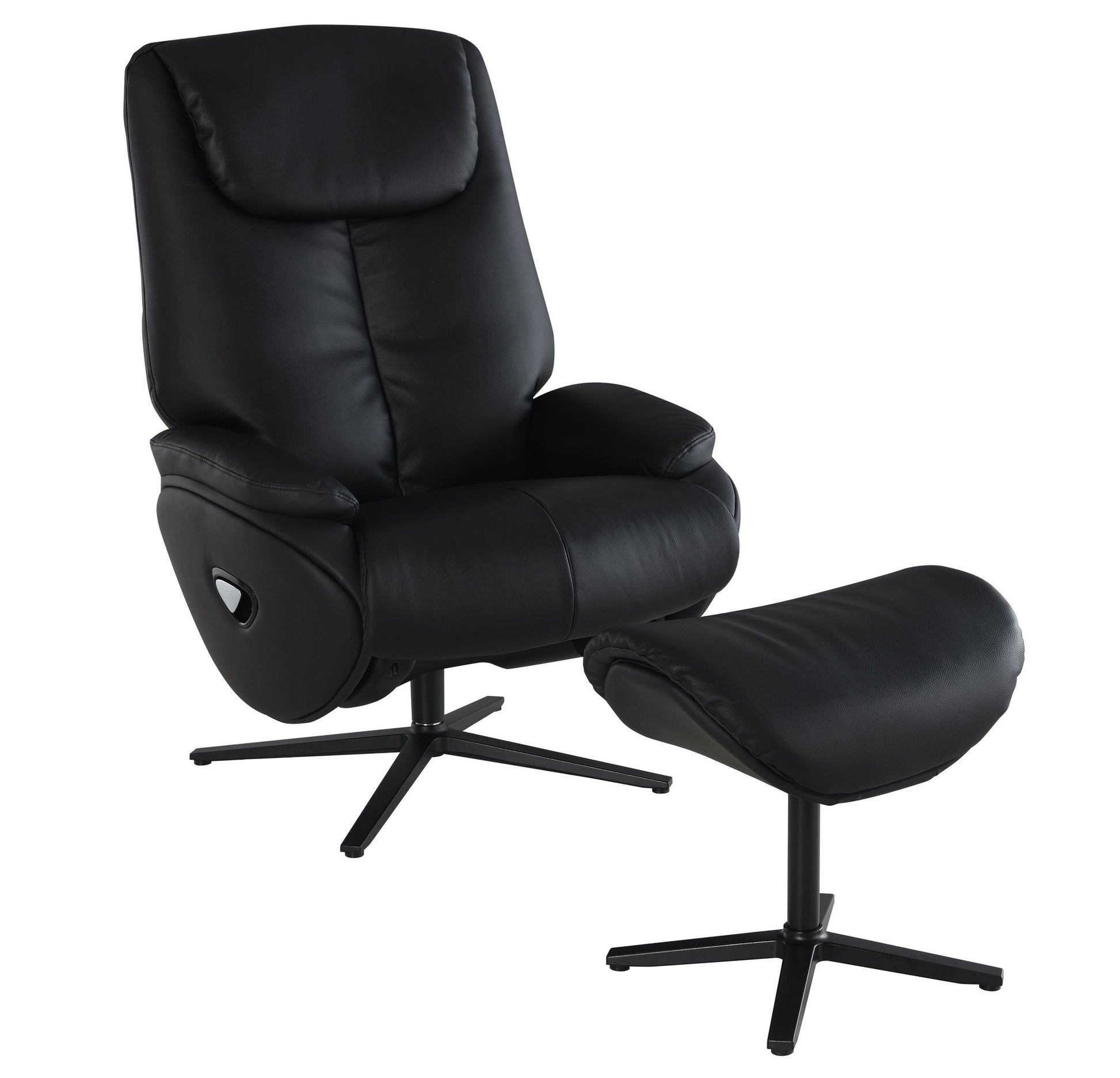 Labotina - Top Grain Leather Accent Chair With Swivel & Ottoman - Black