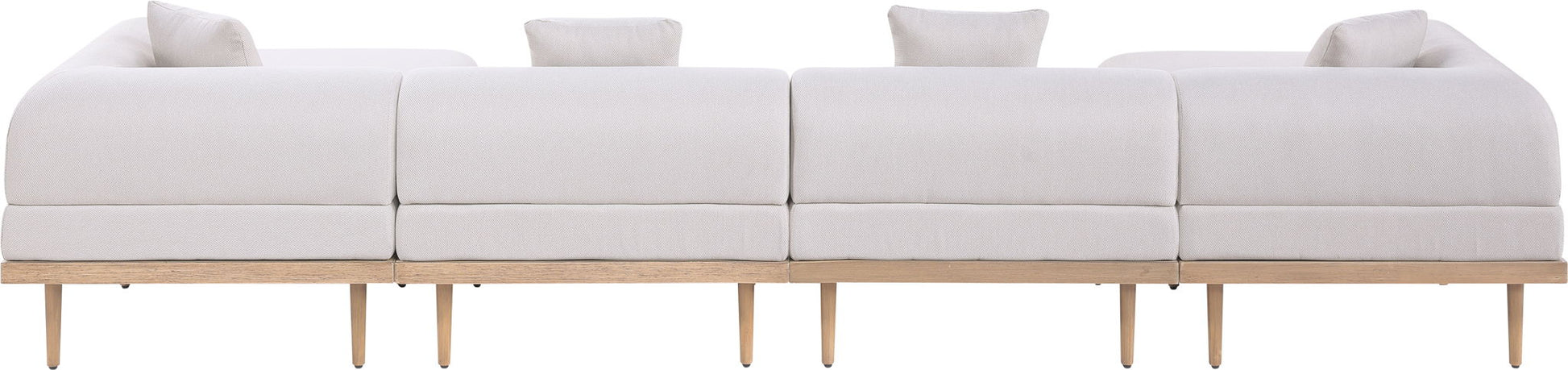 Sleek lines and soft water-resistant fabric bring contemporary style to the Laguna outdoor patio modular sectional. Crafted with a natural teak finish aluminum frame and quick-dry foam, it's built for ultimate outdoor relaxation. Rearrange or add to the set for endless configurations, creating a versatile lounging experience tailored to your space.