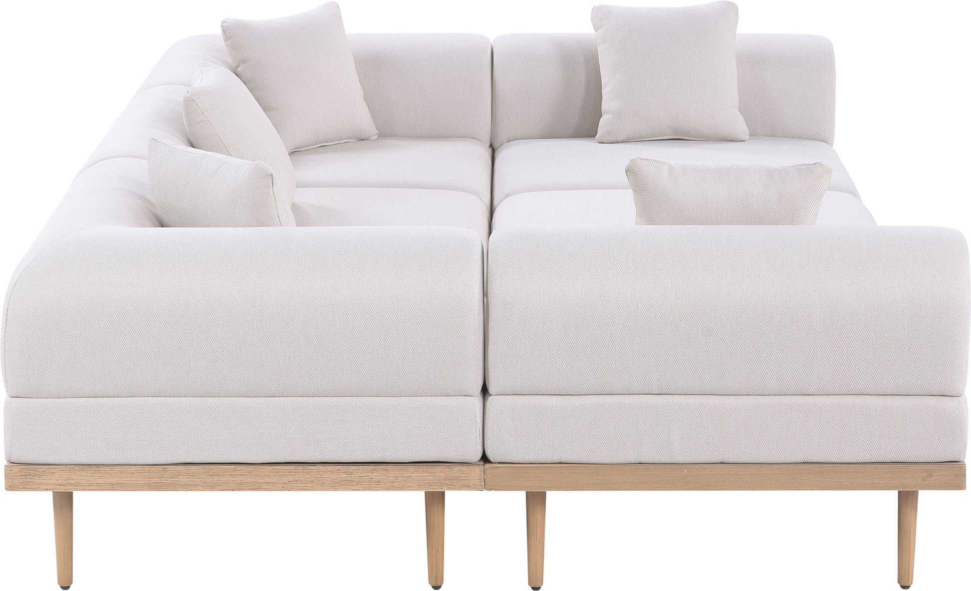 Laguna - 6 Piece Resilient Water Resistant Fabric 142" Upholstered Outdoor Patio Modular Sectional - Cream