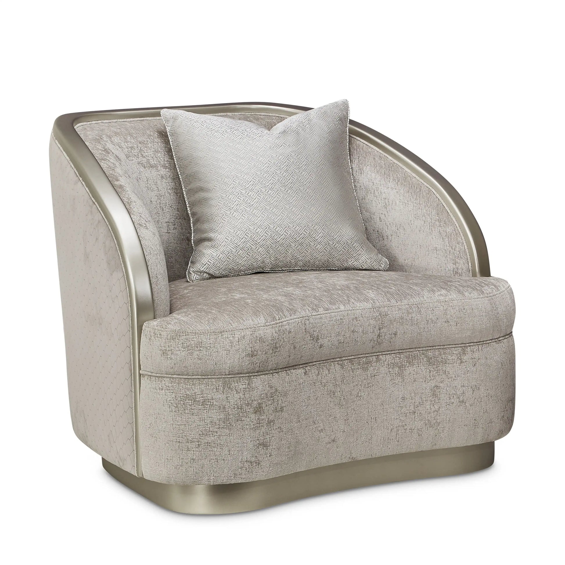 Curvy, elegant, and chic. The Lanna Matching Chair is made with sloping platinum rails and soft chenille fabric for the most comfortable support and sitting. Made for creating a dynamic room layout, this chair is backed with a honeycomb-patterned velvet so each angle is as stunning as the last.