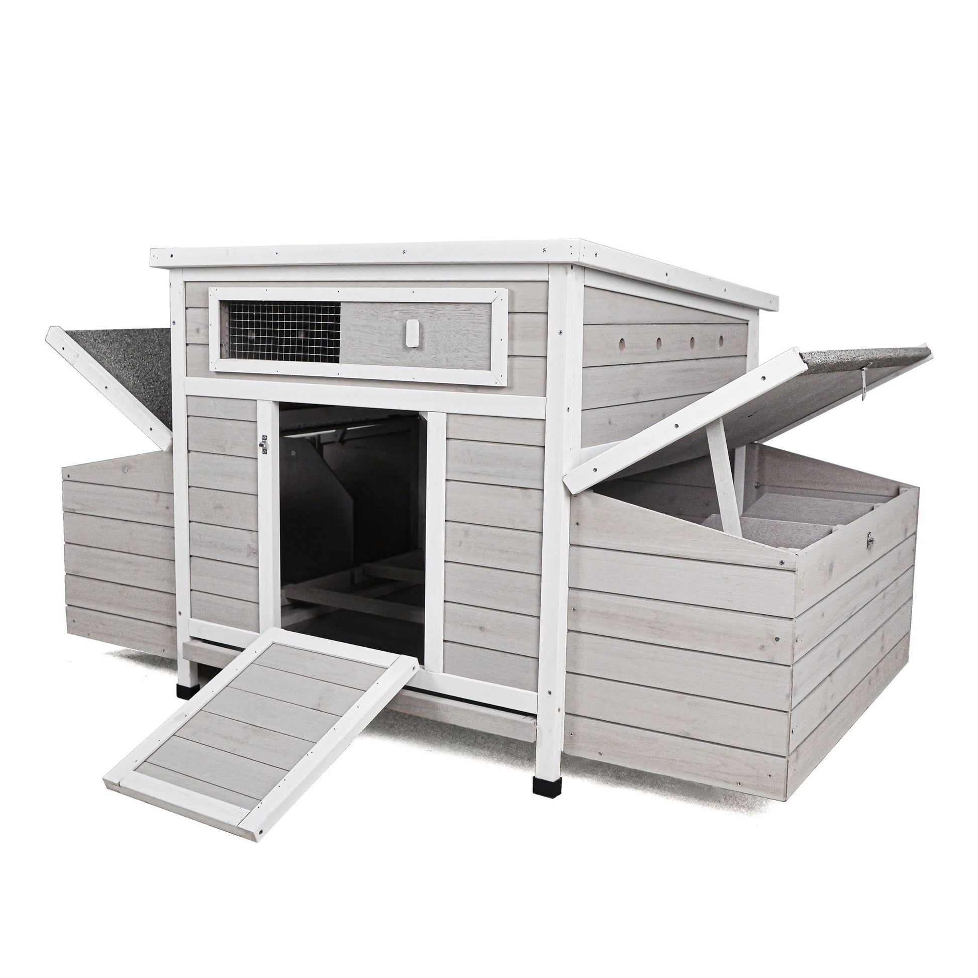 Large Chicken Coop Outdoor Hen House With 2 Sides Nesting Boxes - Gray / White Matte