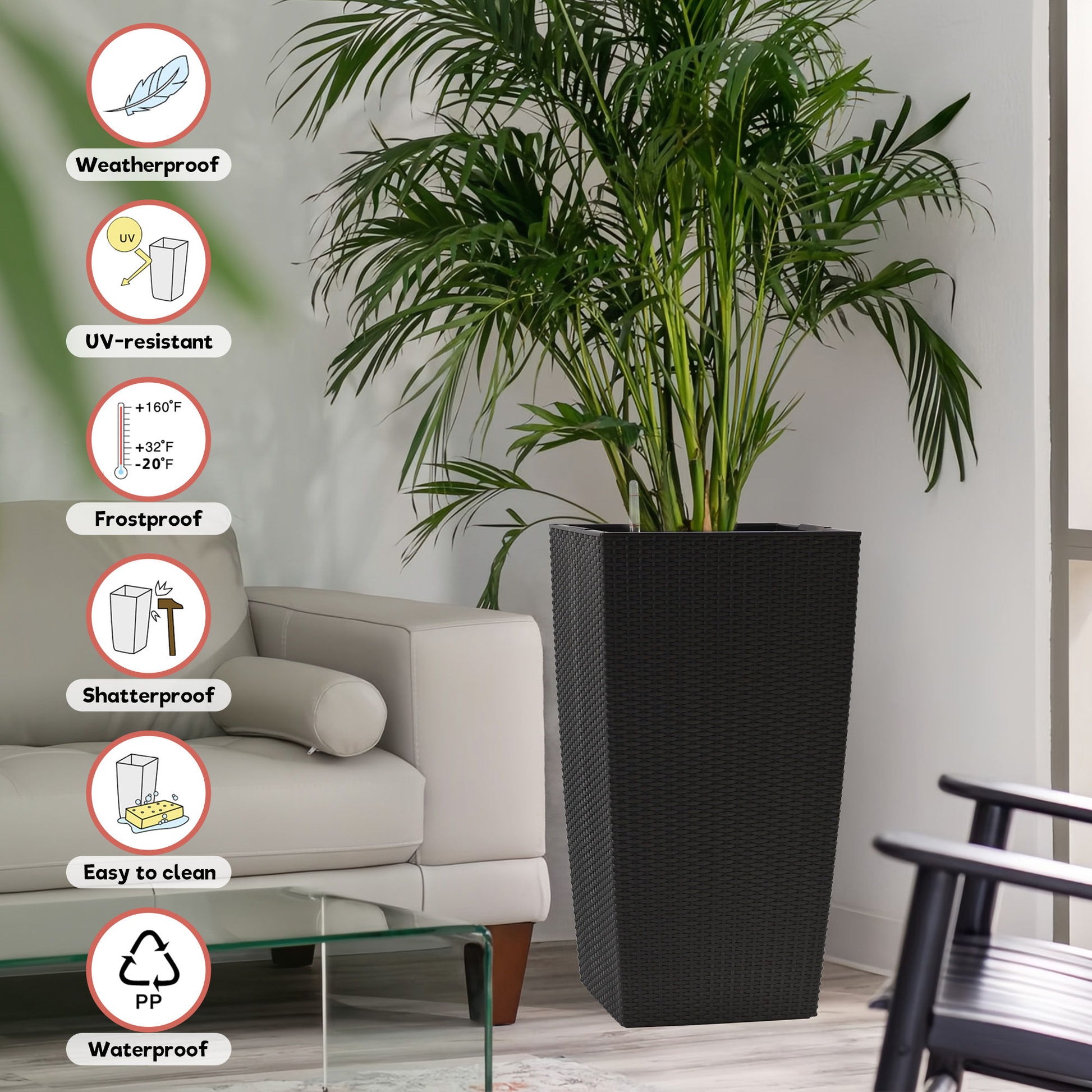 - Drainage System: Features drainage holes and an inner tray to prevent waterlogging.