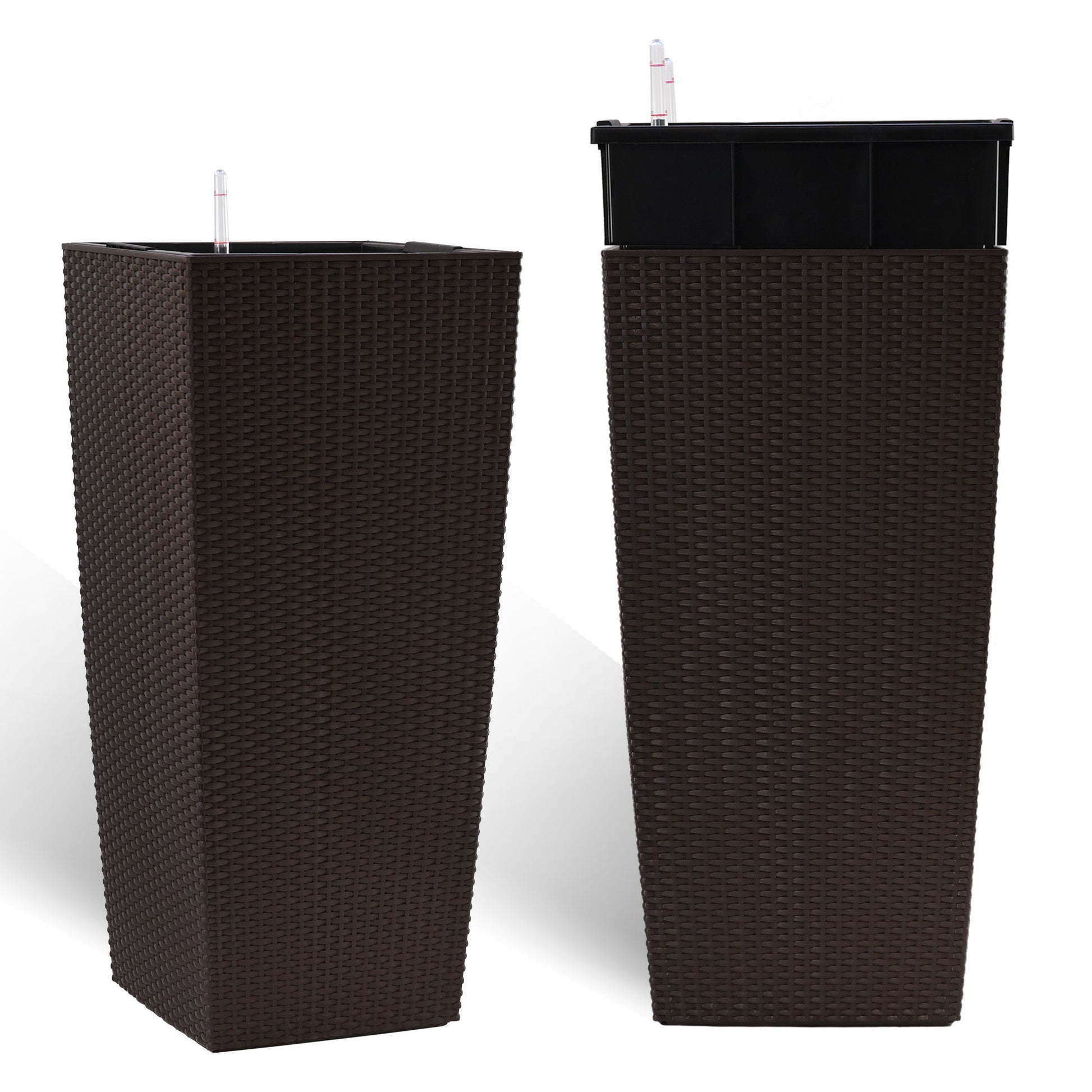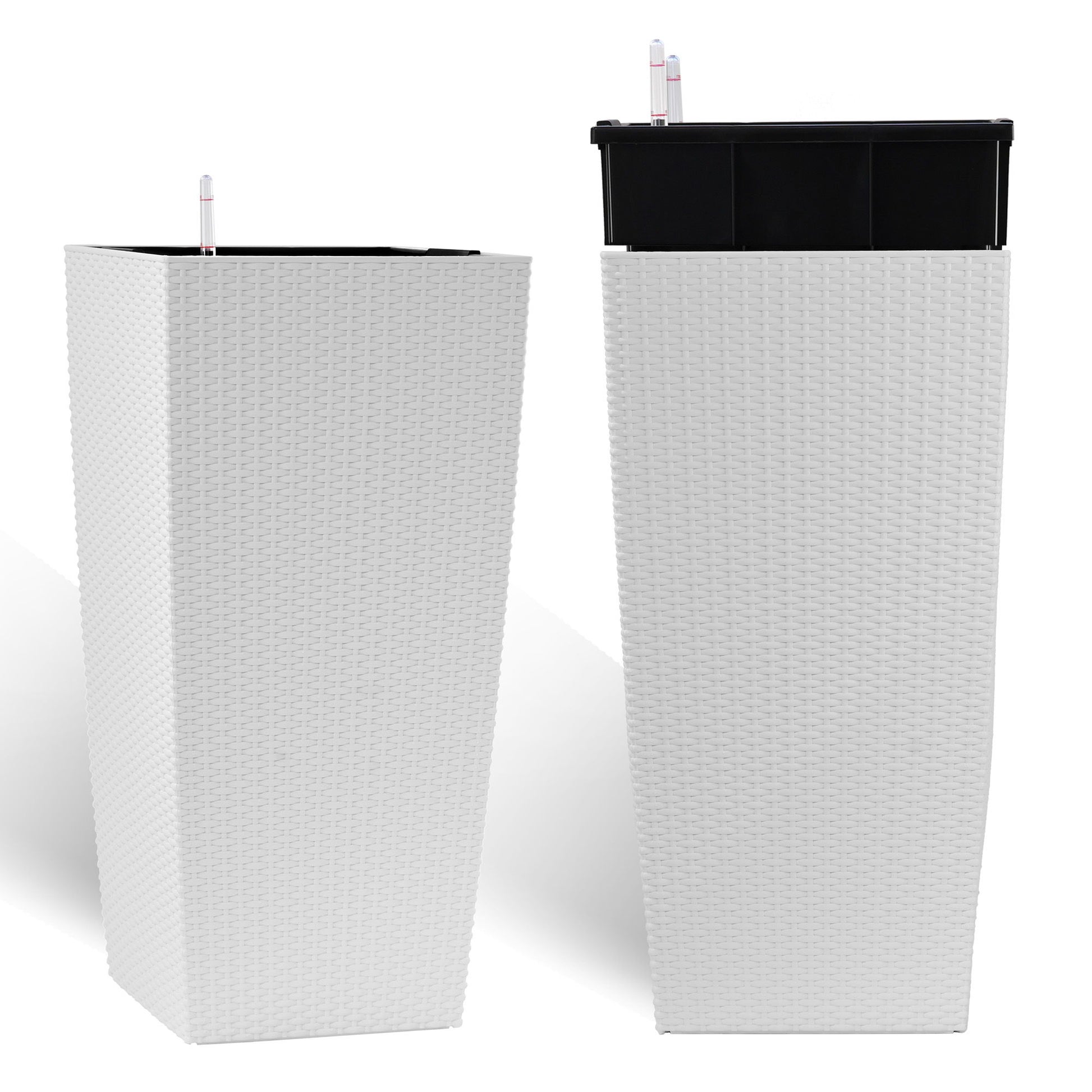 Large Flower Pot With Self Watering System, Indoor Outdoor Planter Featuring Drainage Holes, Inner Tray & Water Level Monitor - Black
