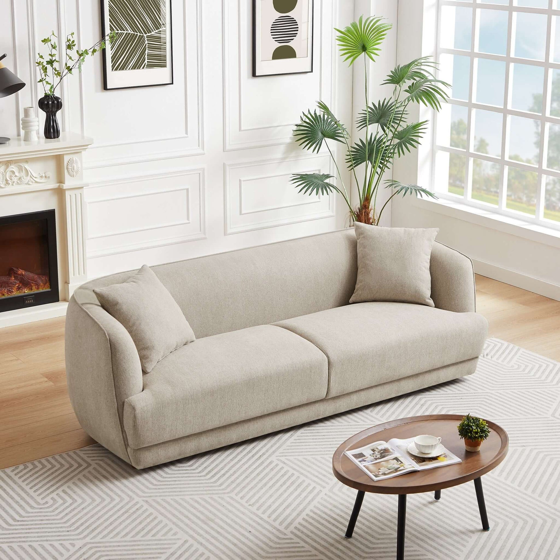- High-Quality Fabric: The sofa features a durable linen fabric that is resistant to wear and tear, ensuring it withstands high-traffic areas and remains in excellent condition.