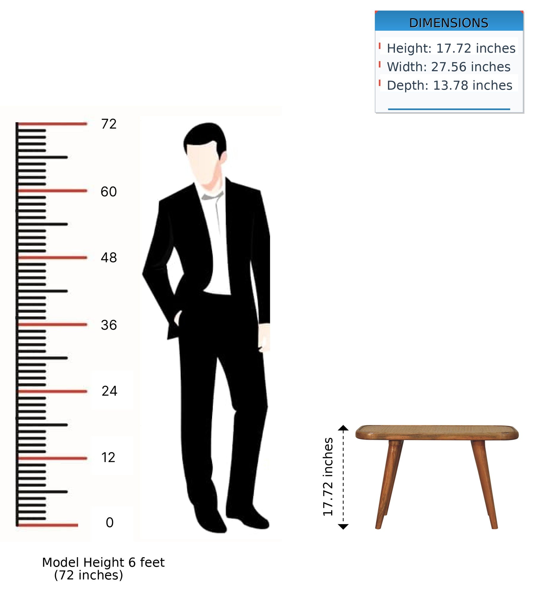 - Artisan Furniture Solid Wood Larissa Rattan Bench - This bench has been beautifully made from 100% solid mango wood in an oak-ish finish with a hand-woven rattan top. Featuring rounded corners, the bench can be used in a variety of settings such as the bedroom, hallway or living room. It can be used as part of a collection with the other rattan pieces to complete the look.