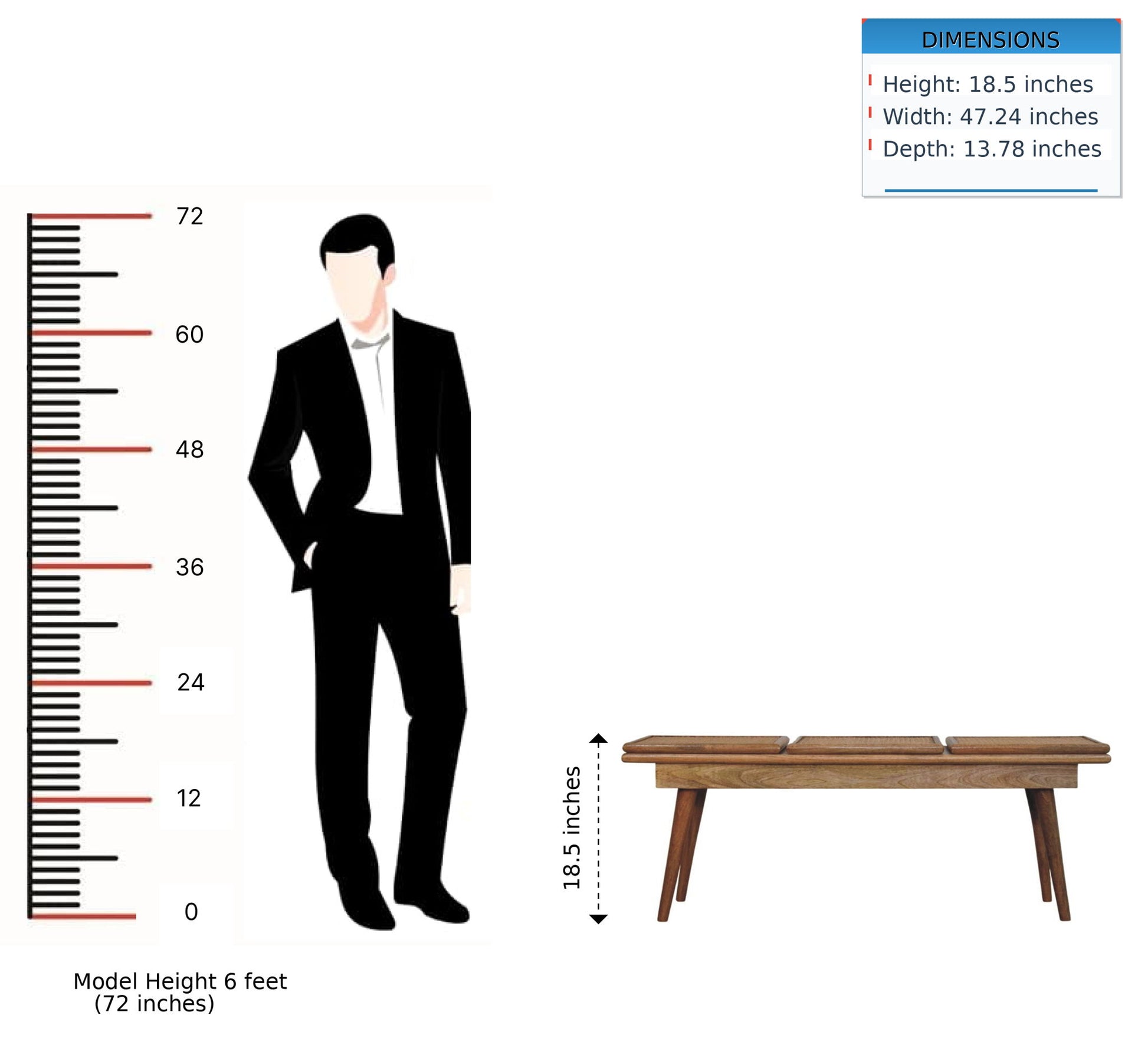 47.24"W x 13.78"D x 18.5"H - 22.05 lb