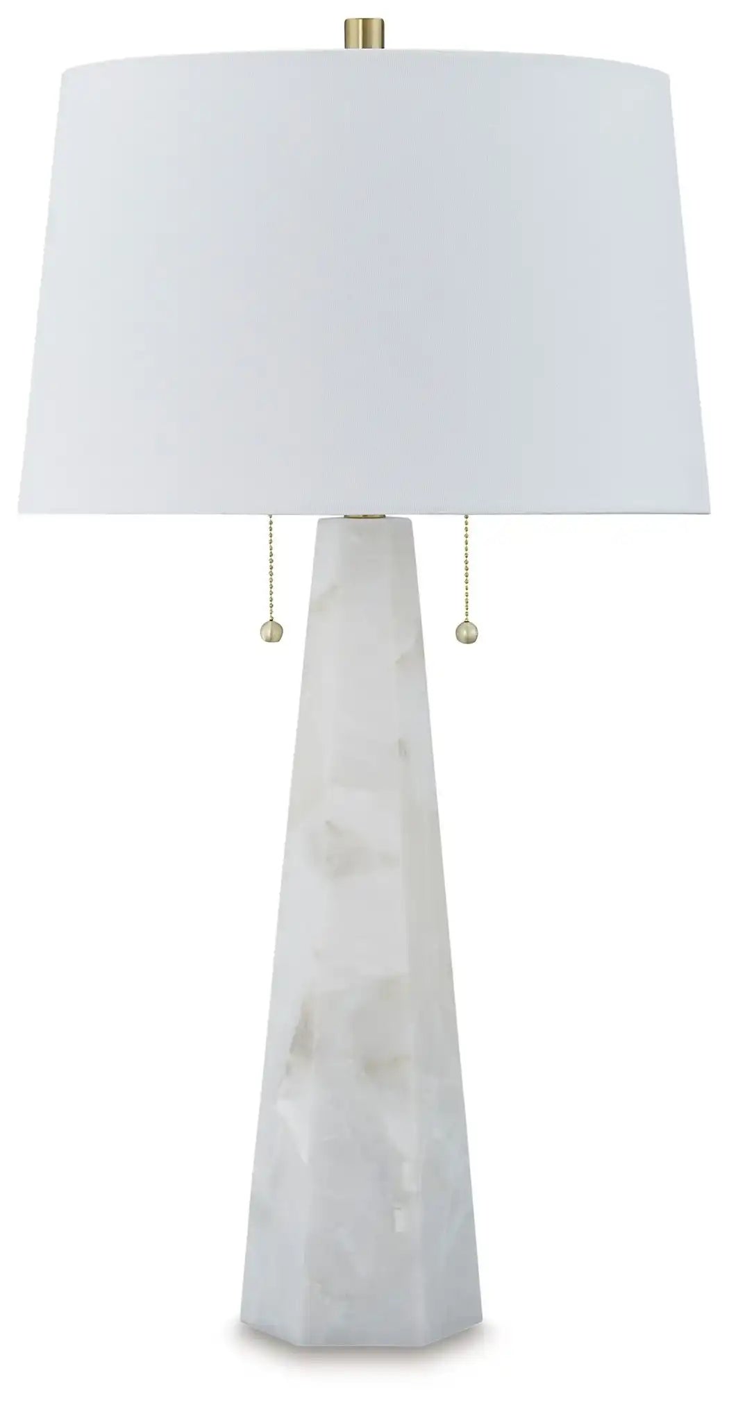 - Made of resin and alabaster with modified drum hardback fabric shade