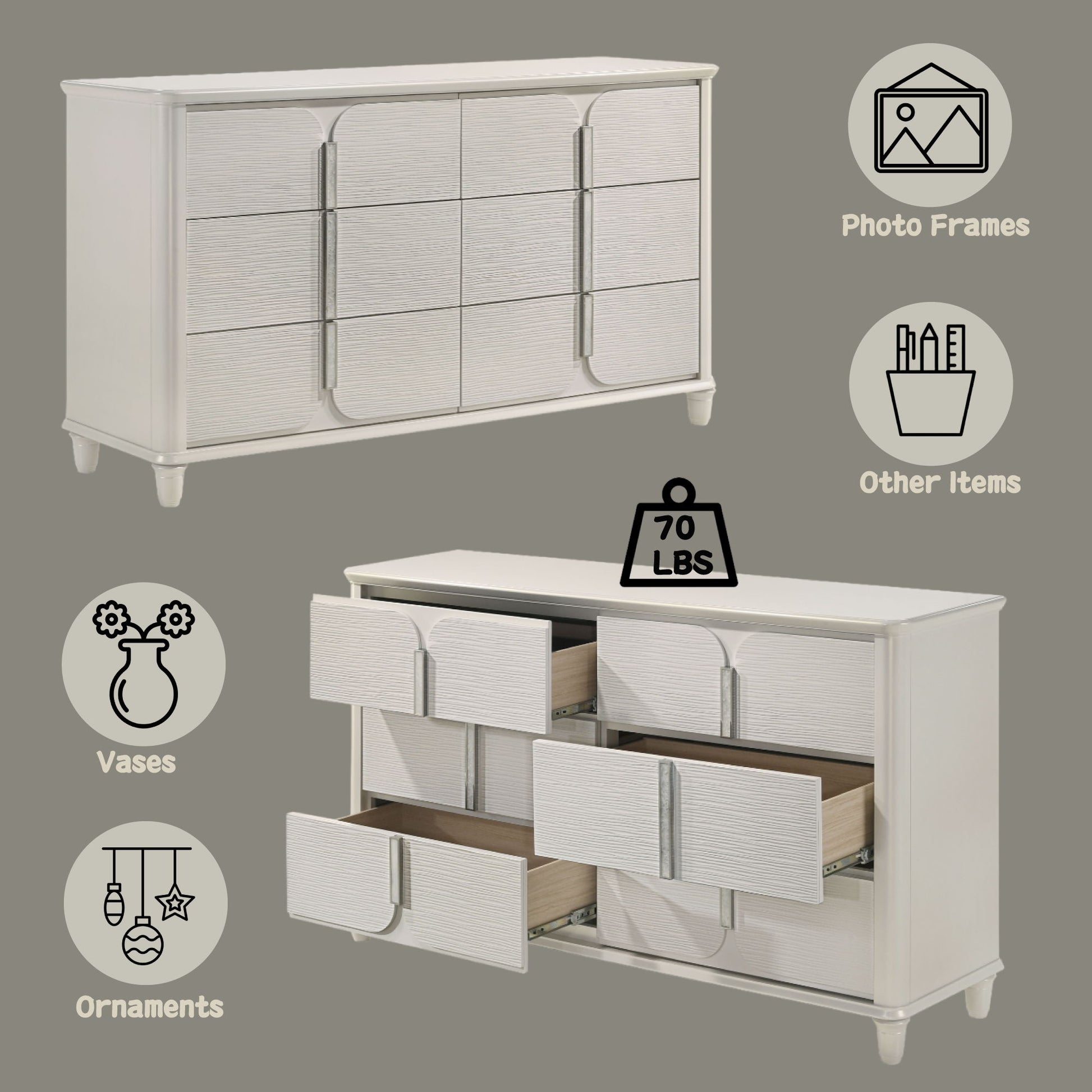 - Ample Storage: This dresser features six spacious drawers, offering generous storage space for clothing, accessories, and essentials, helping to keep your living area organized and clutter-free.
