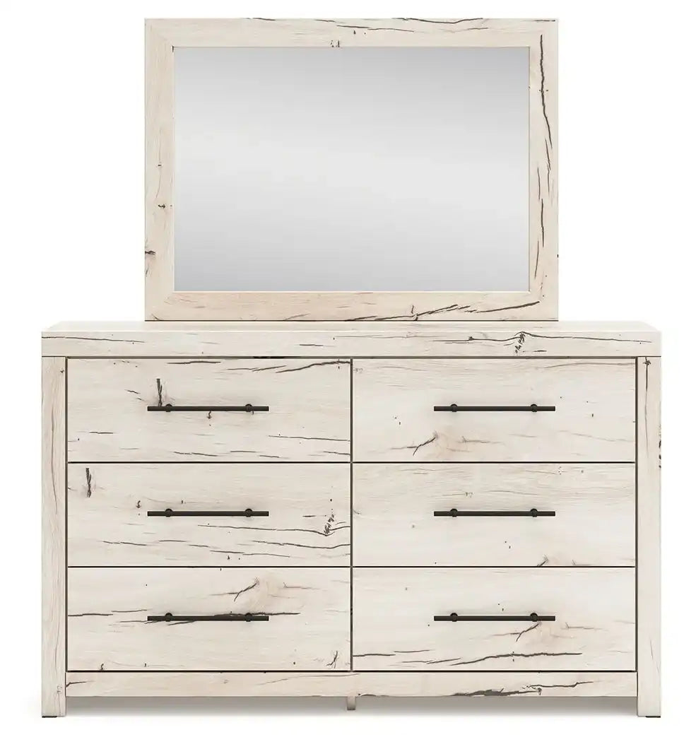 A fresh take on country living, this dresser and mirror set strikes the perfect balance between farmhouse and contemporary. Its rustic white finish and replicated reclaimed oak grain merge effortlessly with the clean-lined look we love today. Spacious drawers help you keep clothes organized and put clutter in its place. You’ll love how this set's simple design transforms your bedroom into a harmonious haven.