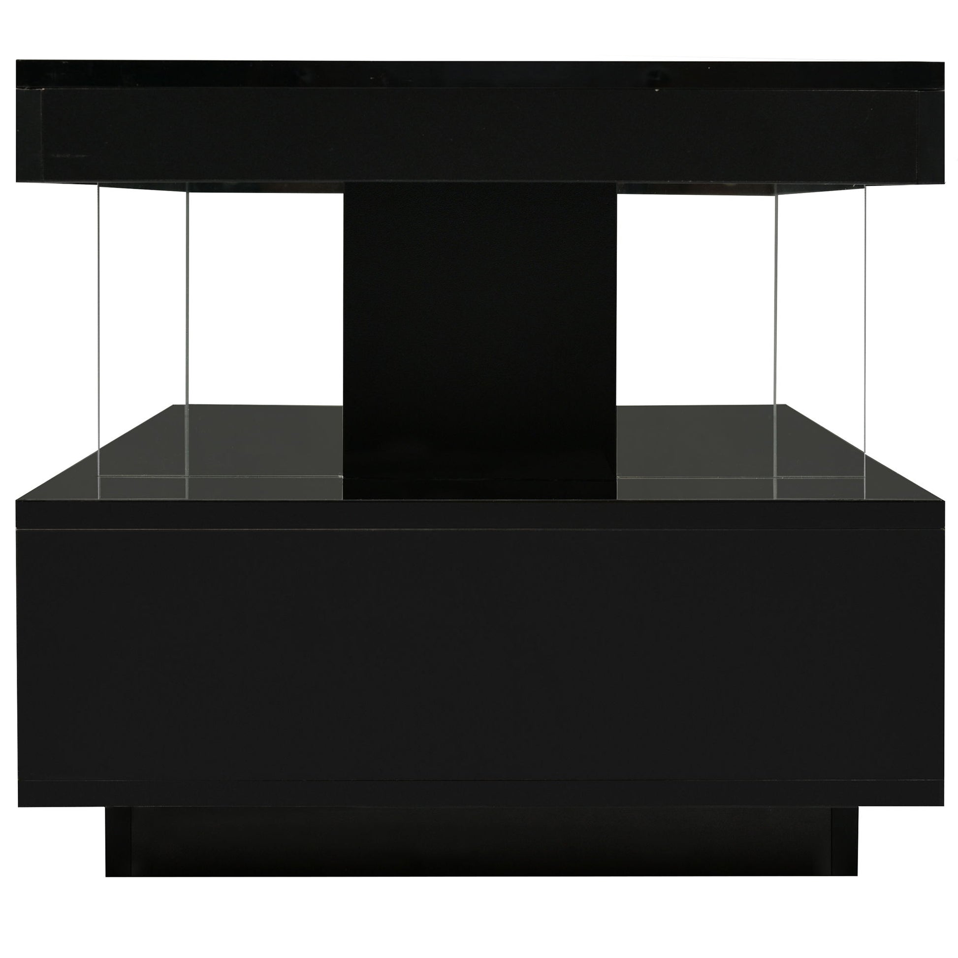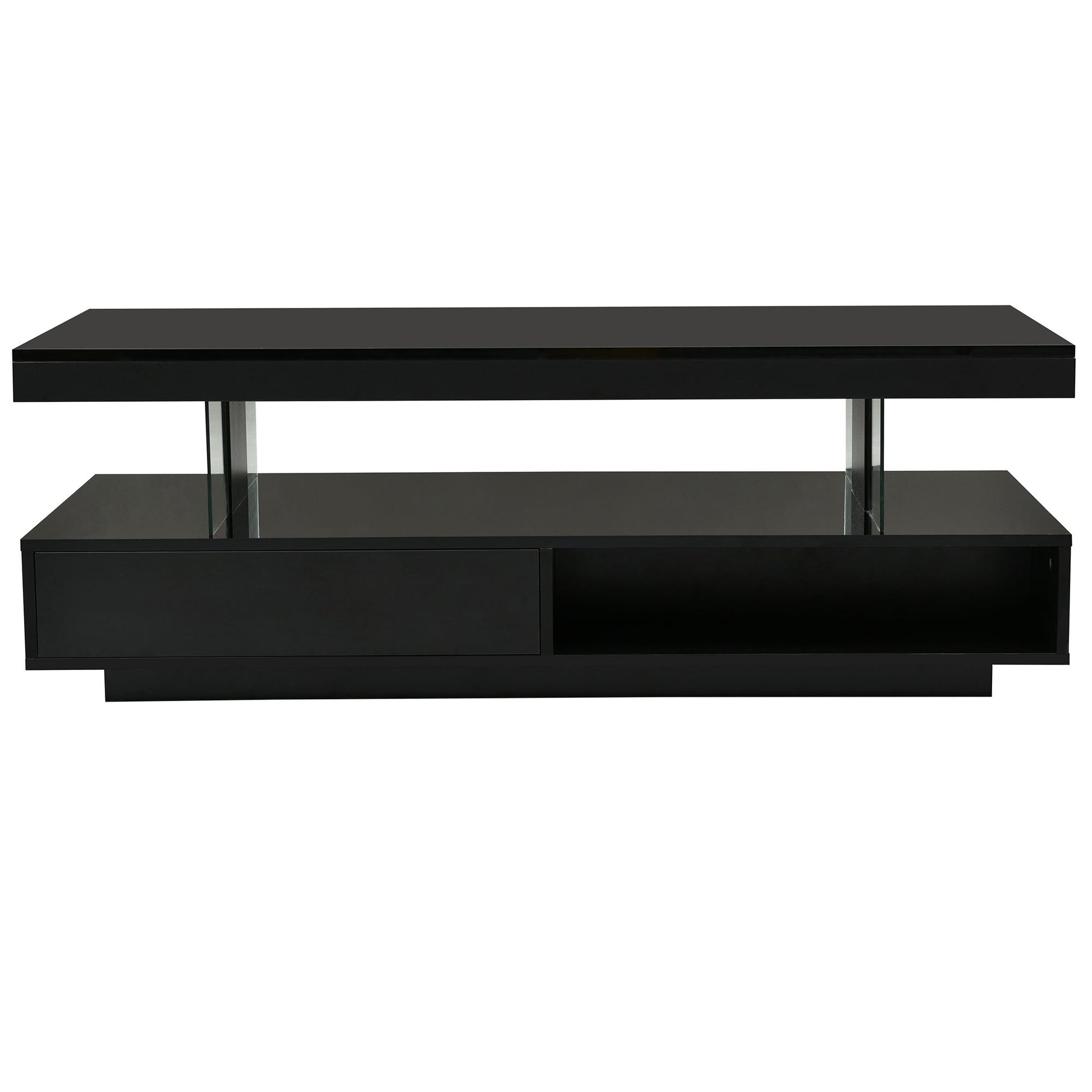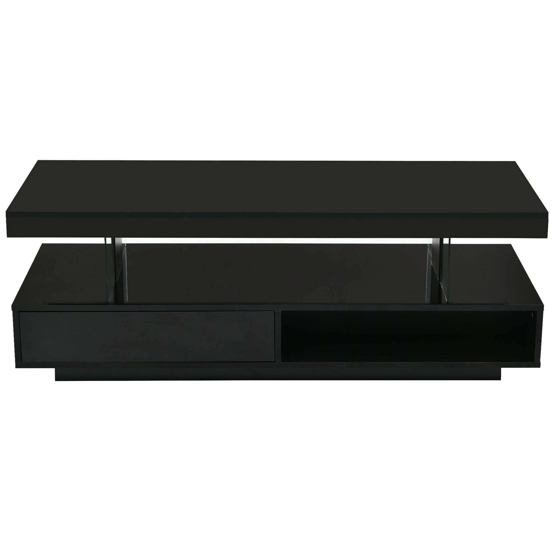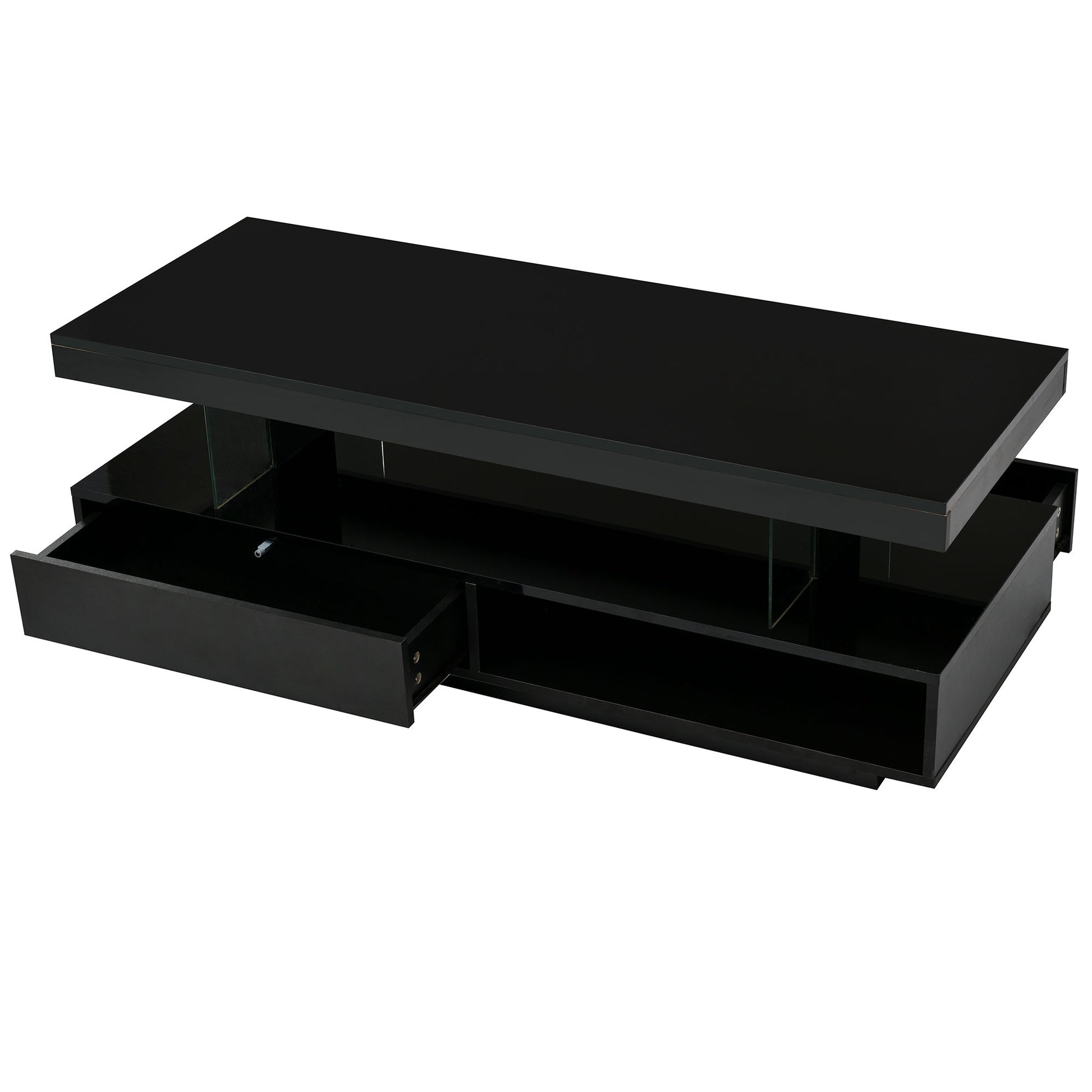 LED Coffee Table With Storage, Modern Center Table With 2 Drawers And Display Shelves, Accent Furniture With LED Lights For Living Room - Black