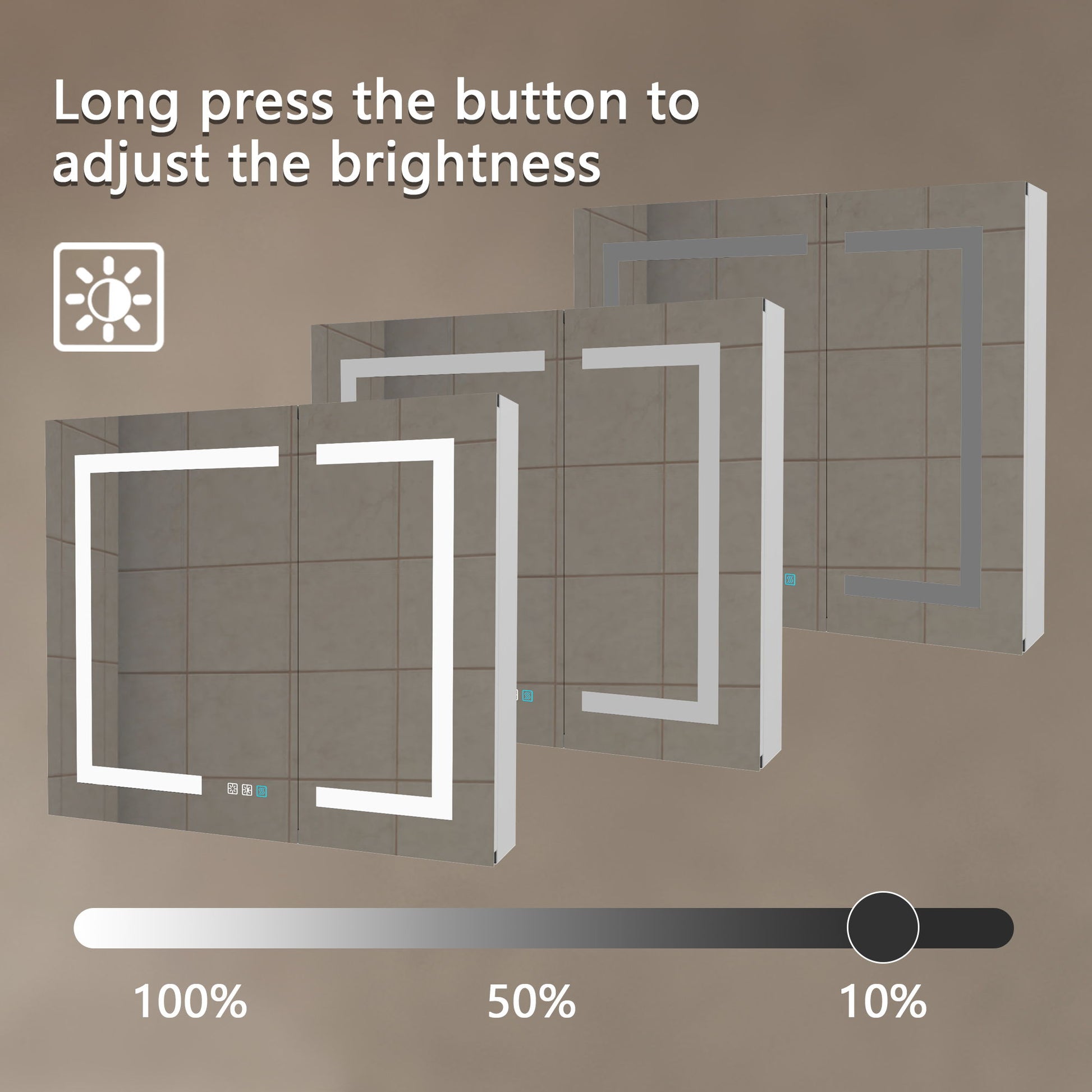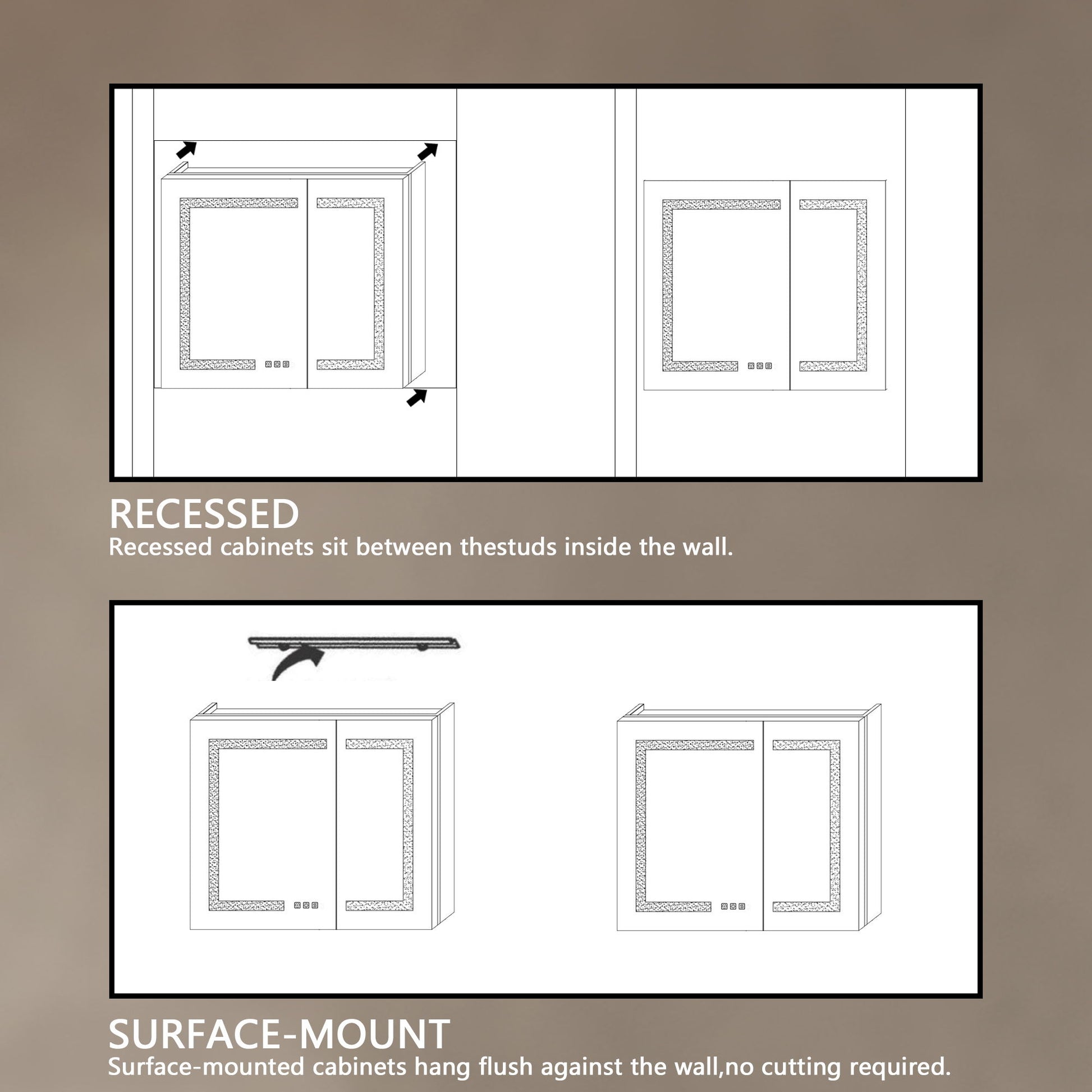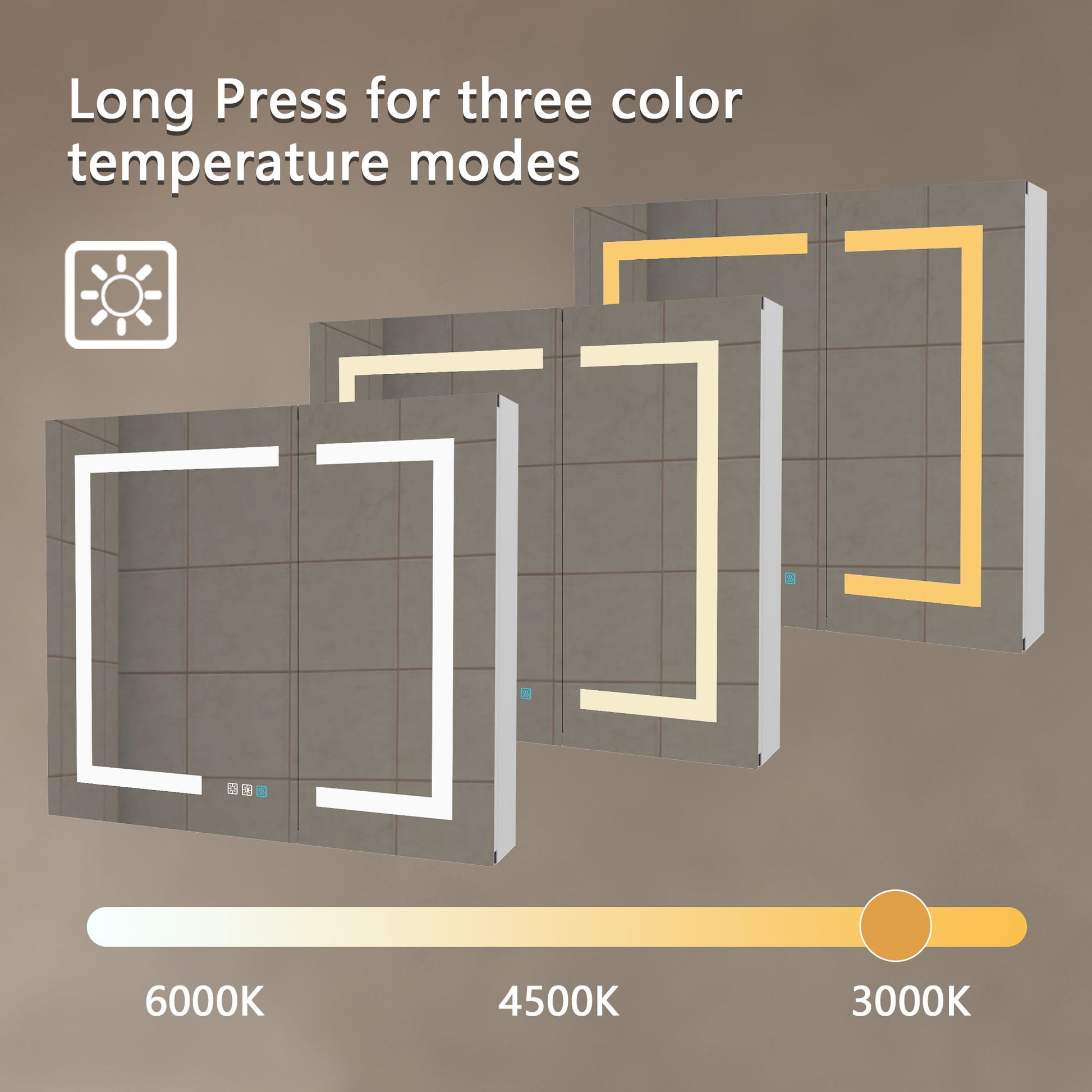 LED Lighted Bathroom Medicine Cabinet With Mirror, Recessed Or Surface LED Medicine Cabinet, Defog, Stepless Dimming, Color Temper Change, Storage Shelves