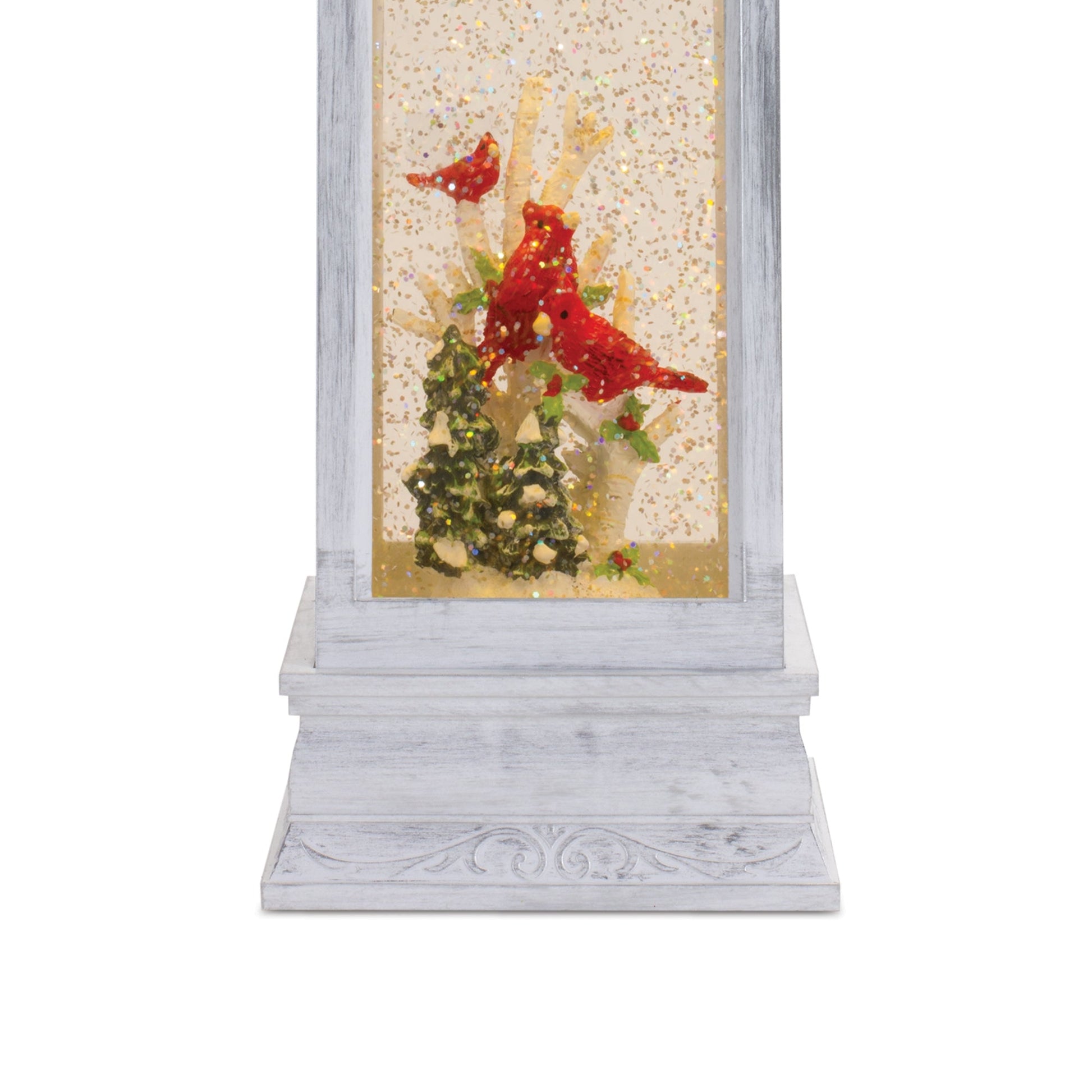 LED Snow Globe Lantern with Cardinal Bird Scene 12.74"H