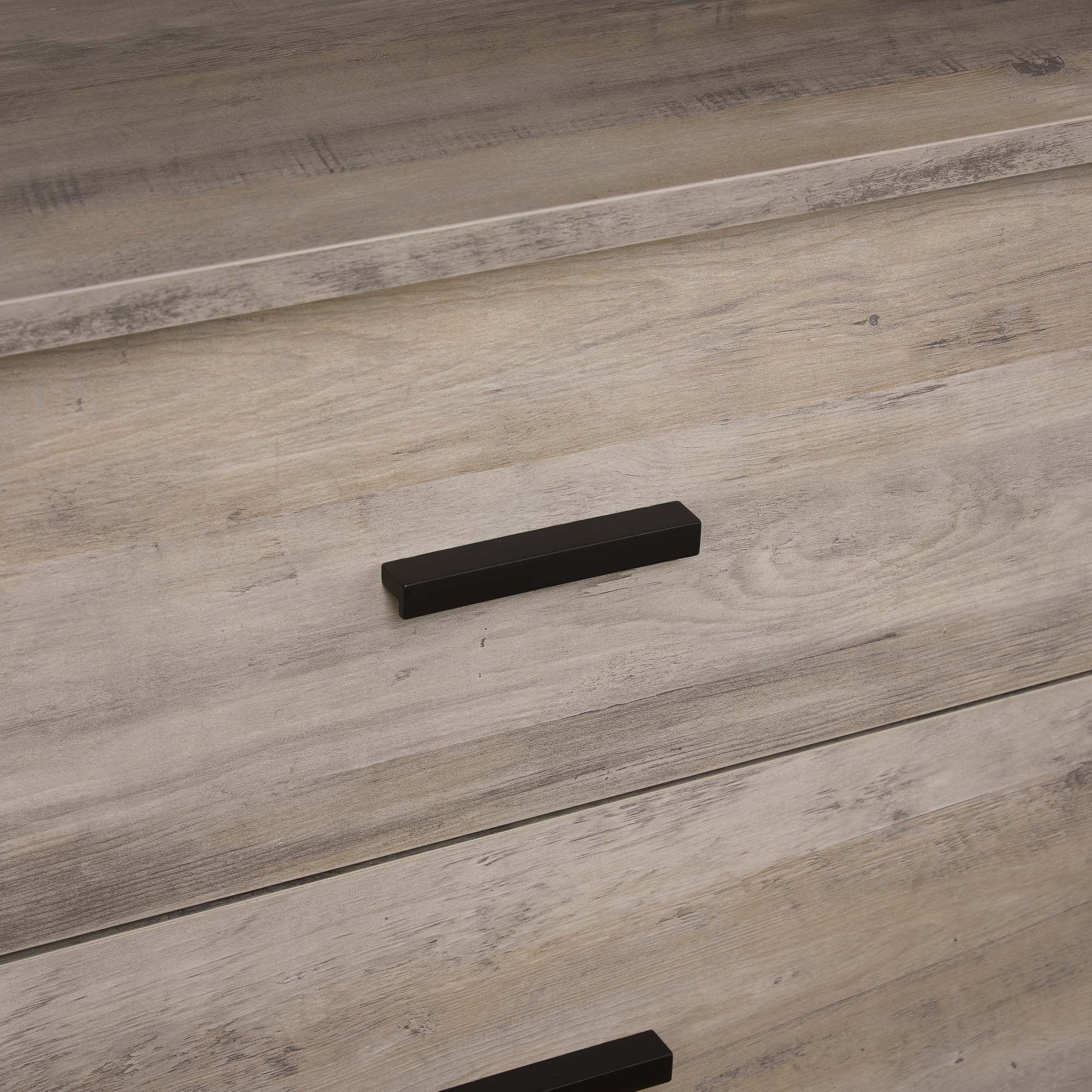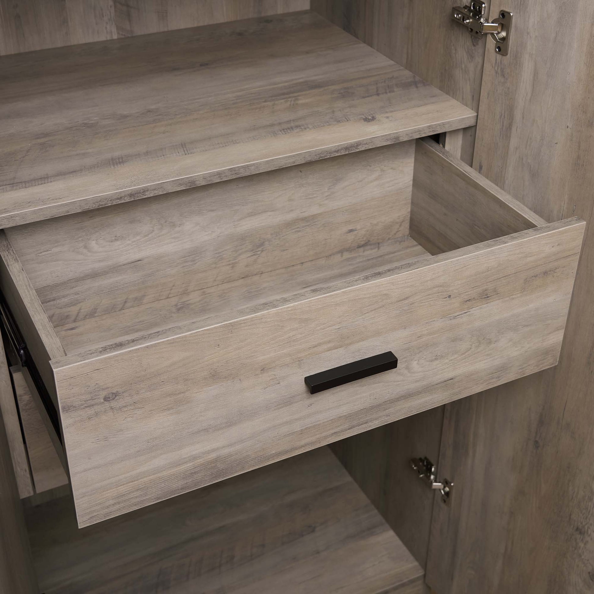 - Full Extension Drawers: Equipped with black horizontal drawer pulls for easy access