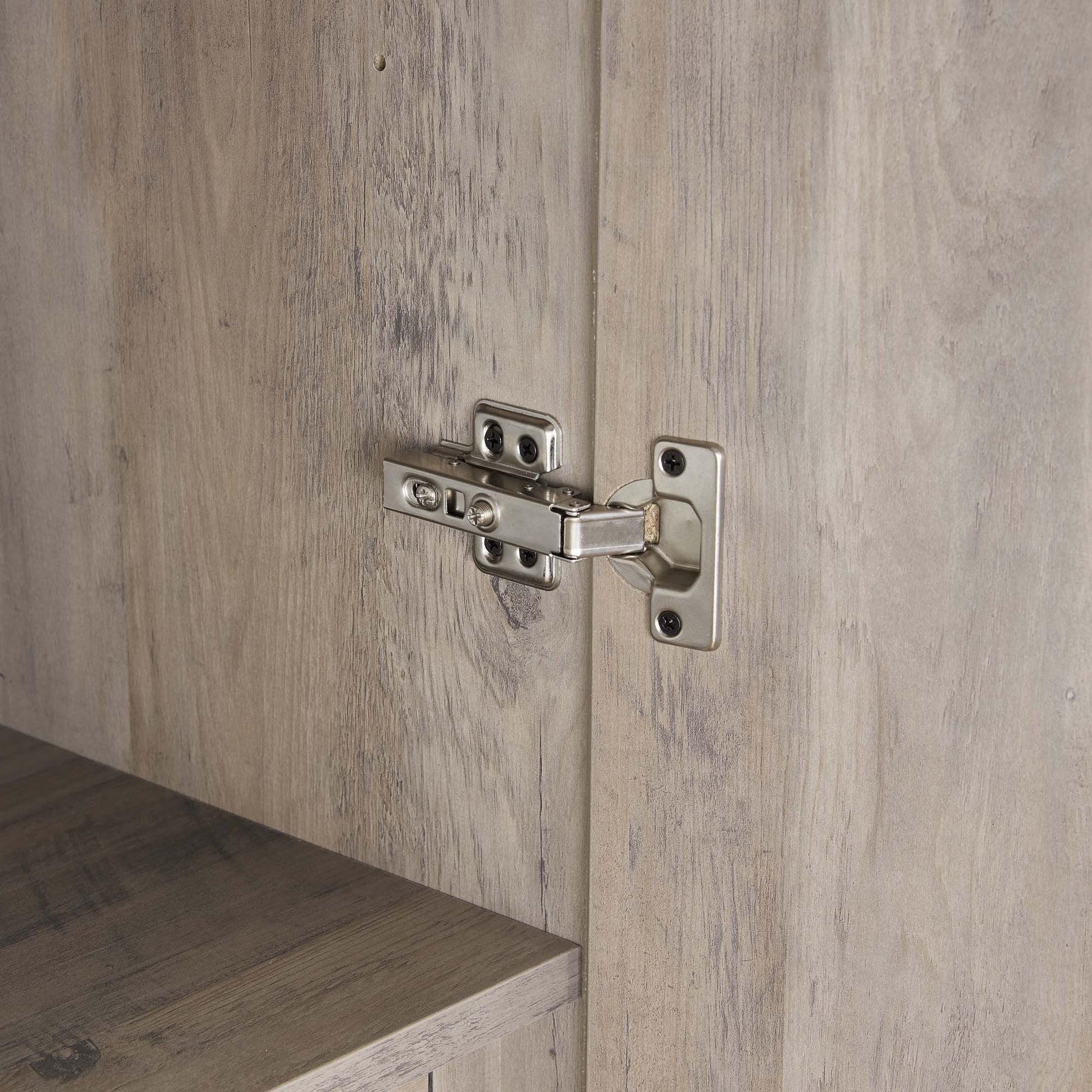 - Soft Close Hinges: Ensures quiet and smooth door operation with long vertical black handles