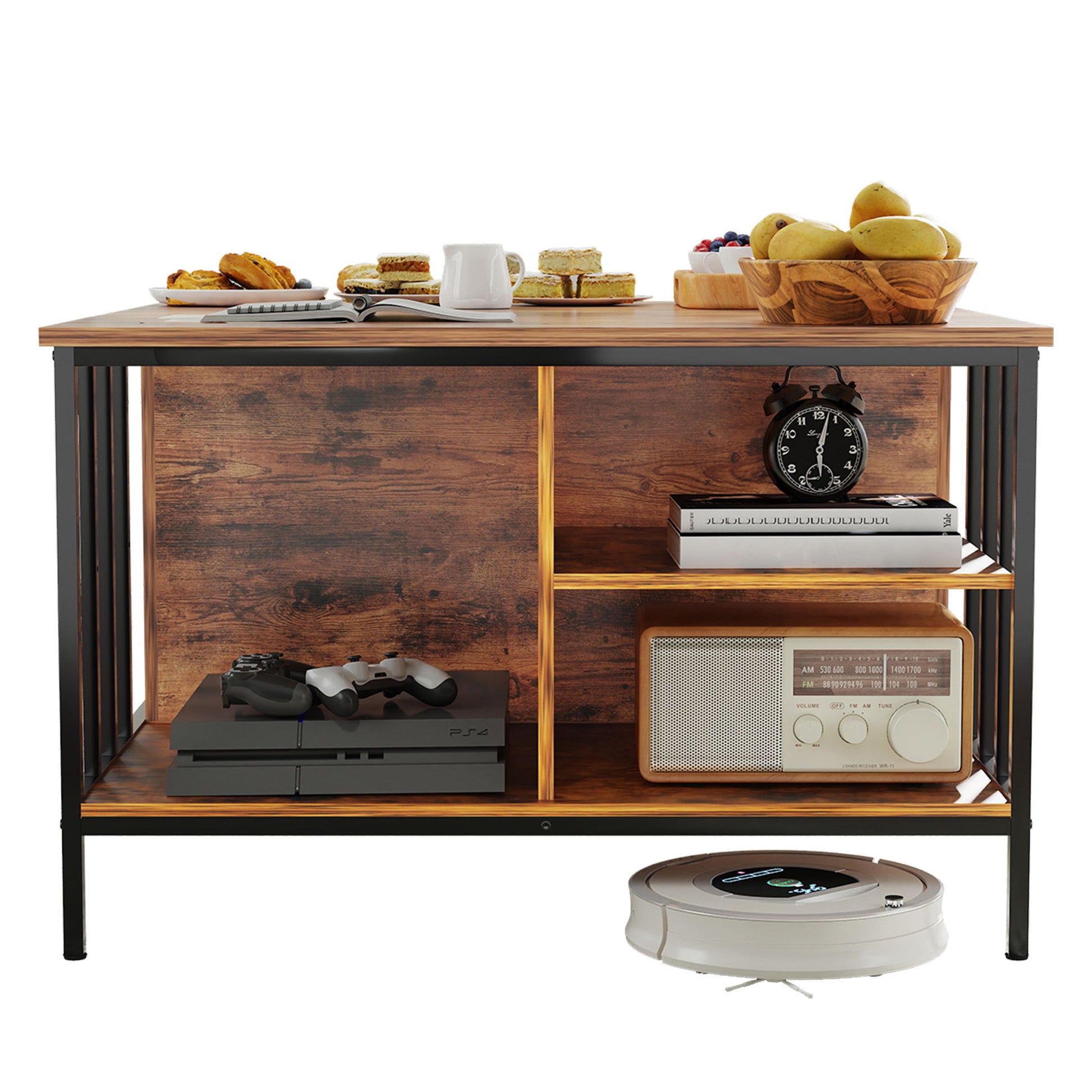 - Ample Storage: Features a large hidden compartment and three open shelves for organized storage.