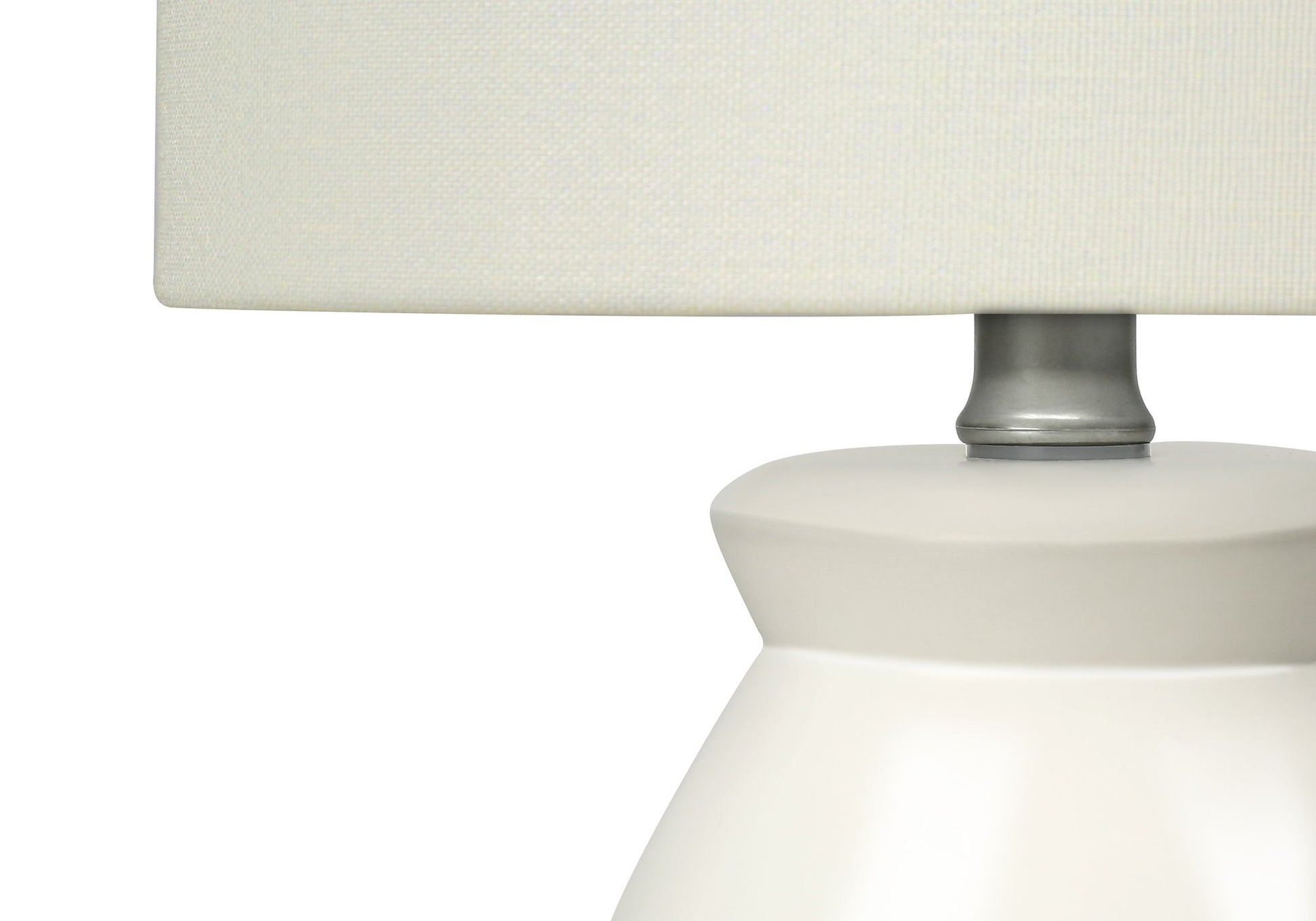 - Modern Design: Features a 17" high table lamp with a sleek cream ceramic base and an ivory linen drum shade, ideal for adding a contemporary touch to any room.