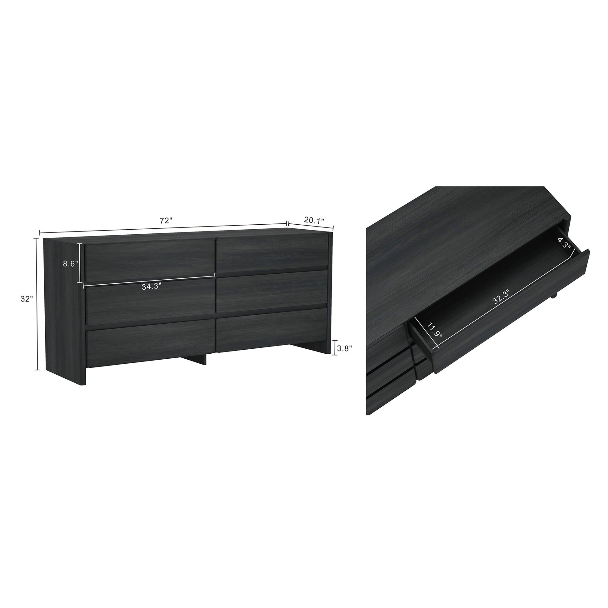 Linda - Double Wide Dresser With 6 Drawers - Charcoal Grey
