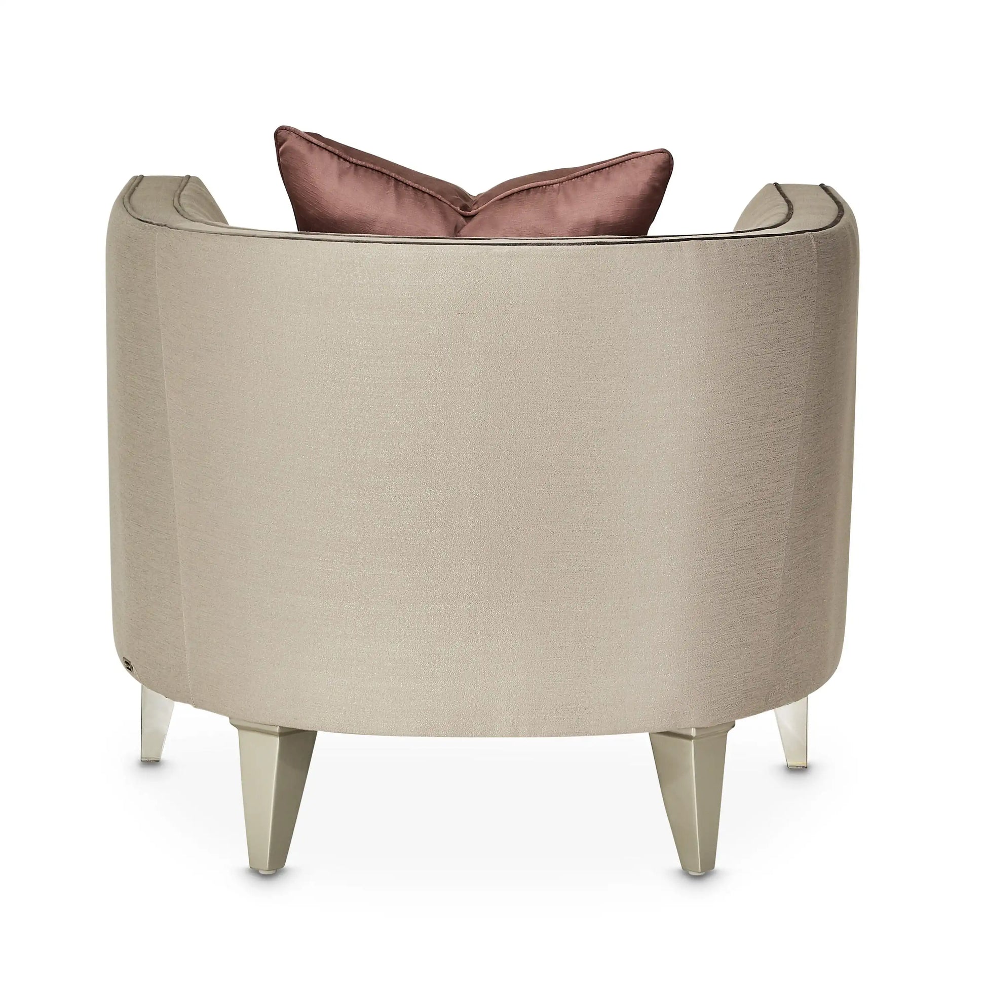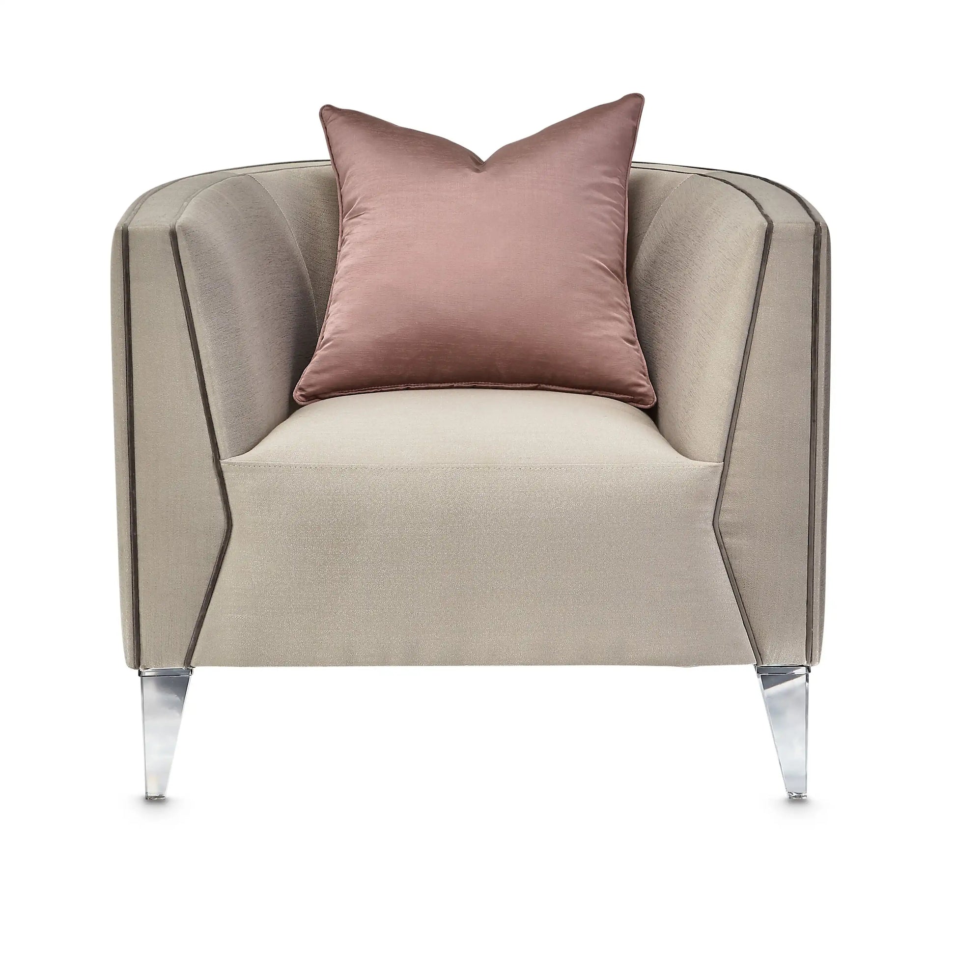 Settle into elegance! The Linea Matching Chair is all about symmetry and striking shapes. With a club chair design, shimmering fabric, and sleek gray contrast welting, you'll look forward to lounging with contemporary glamour every day.