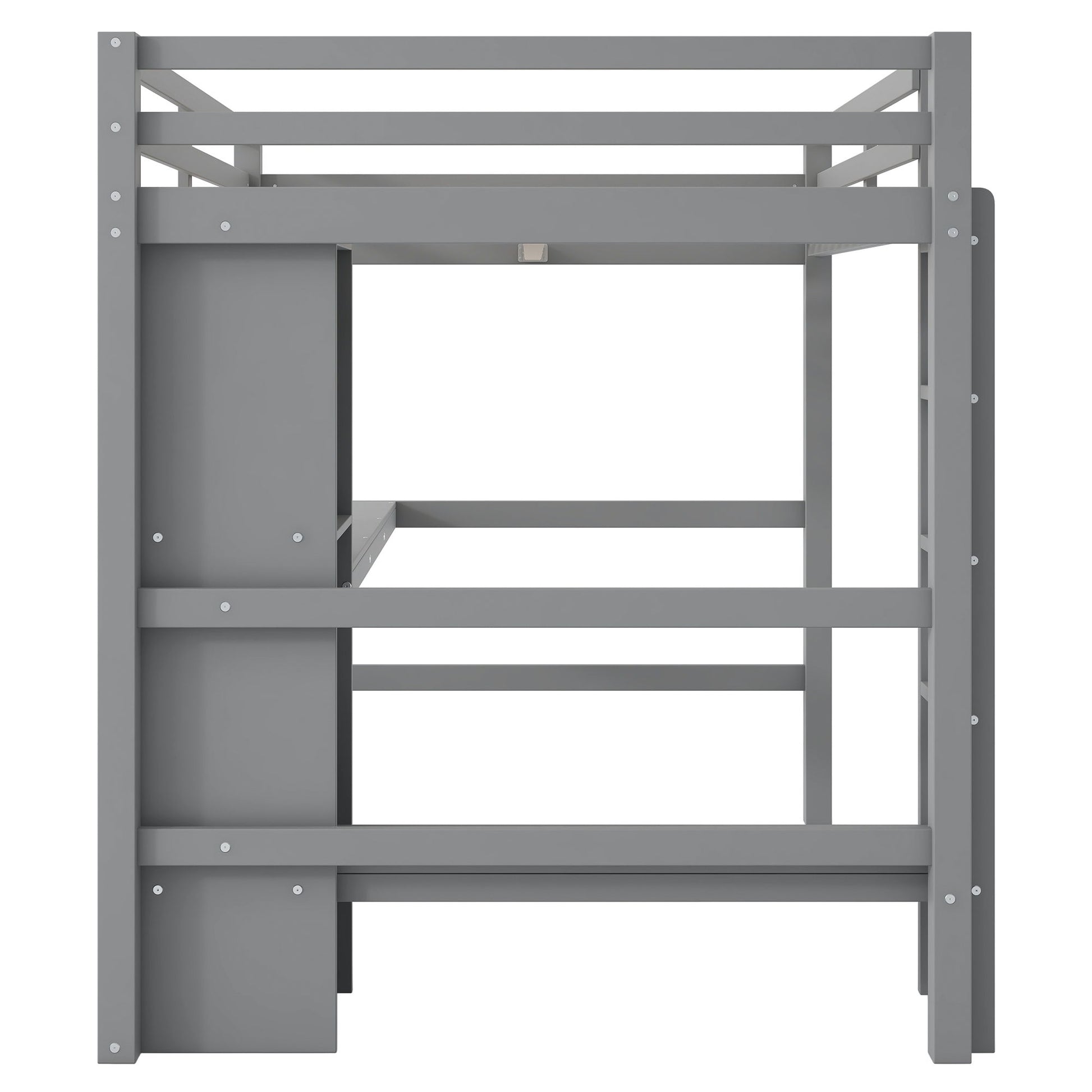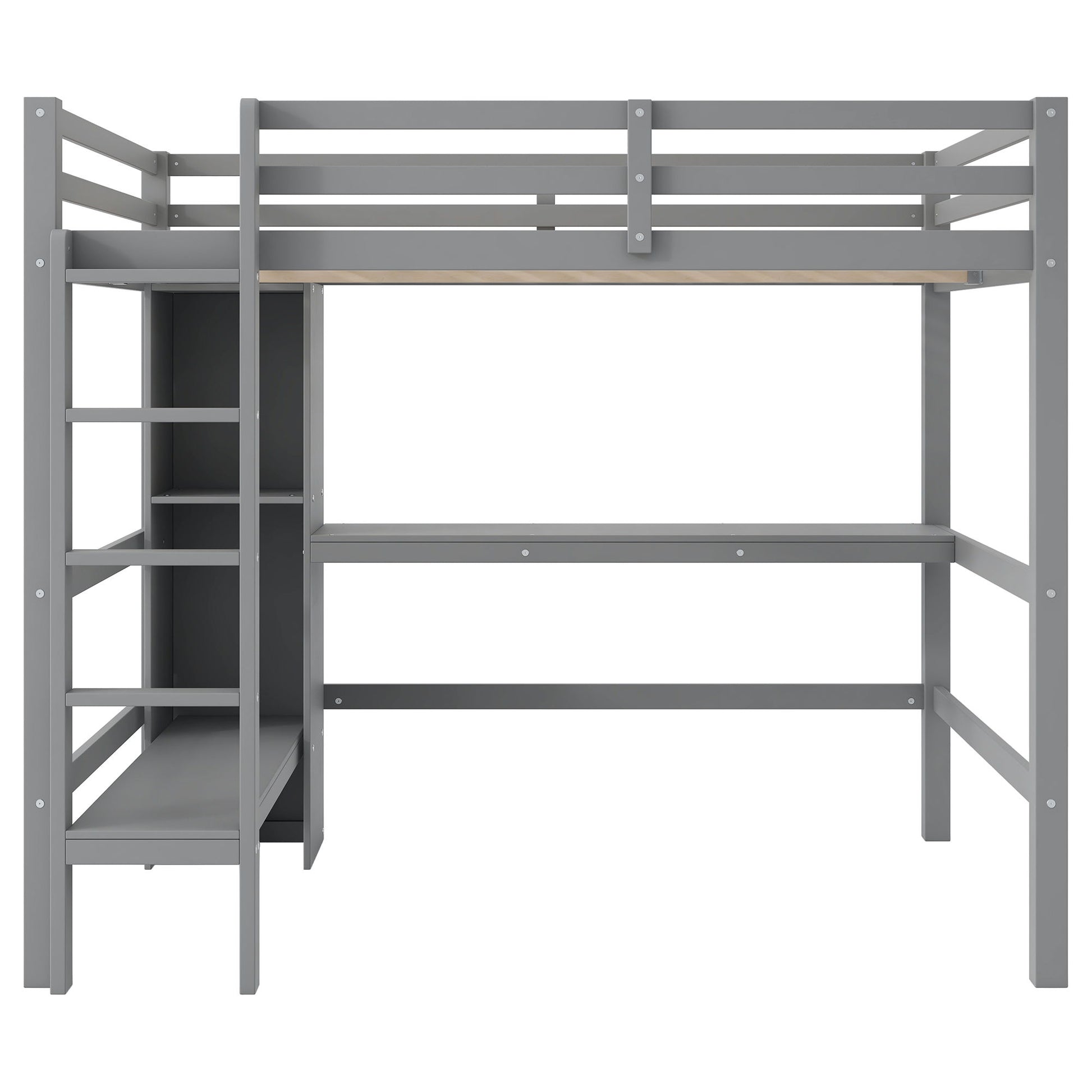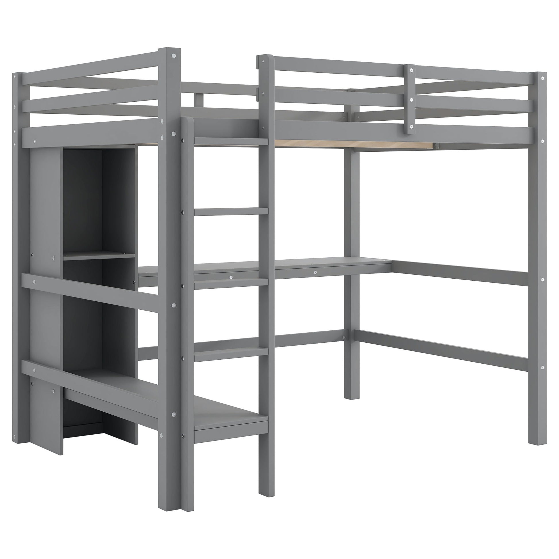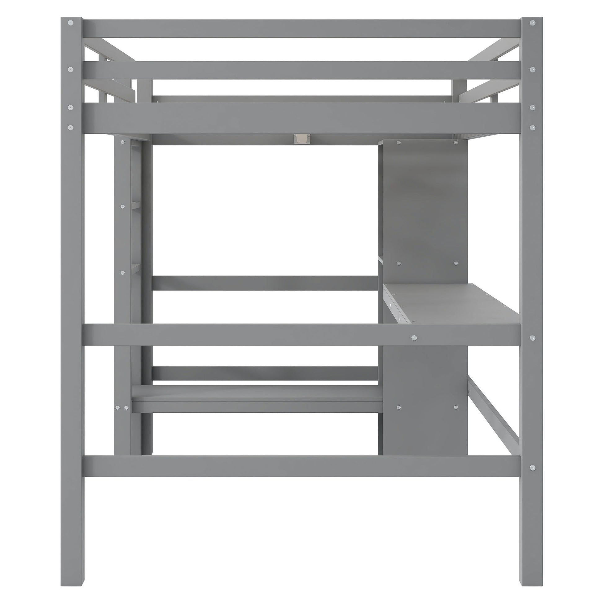 Full Size Loft Bed With Built In Desk And Multifunction Shelves - Gray