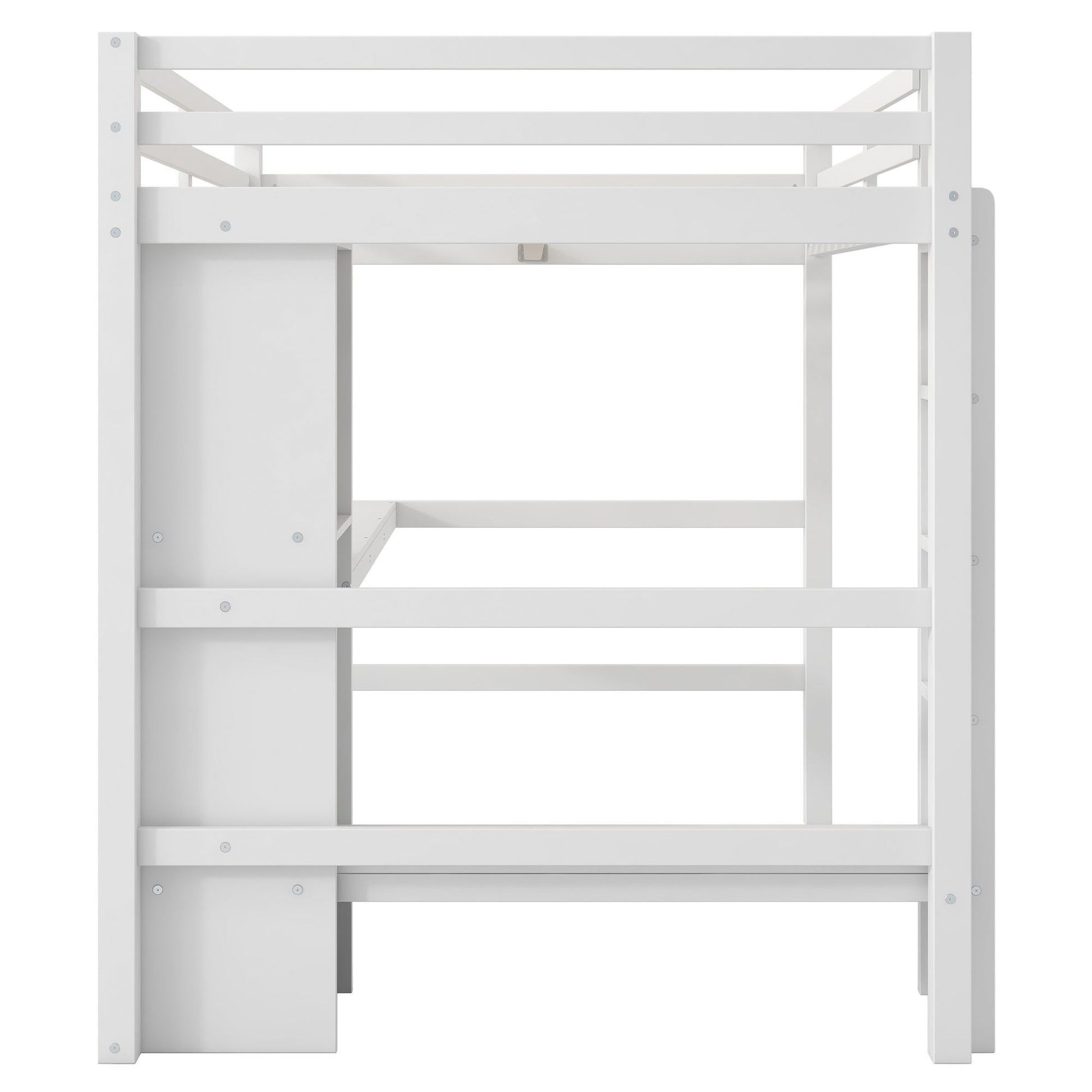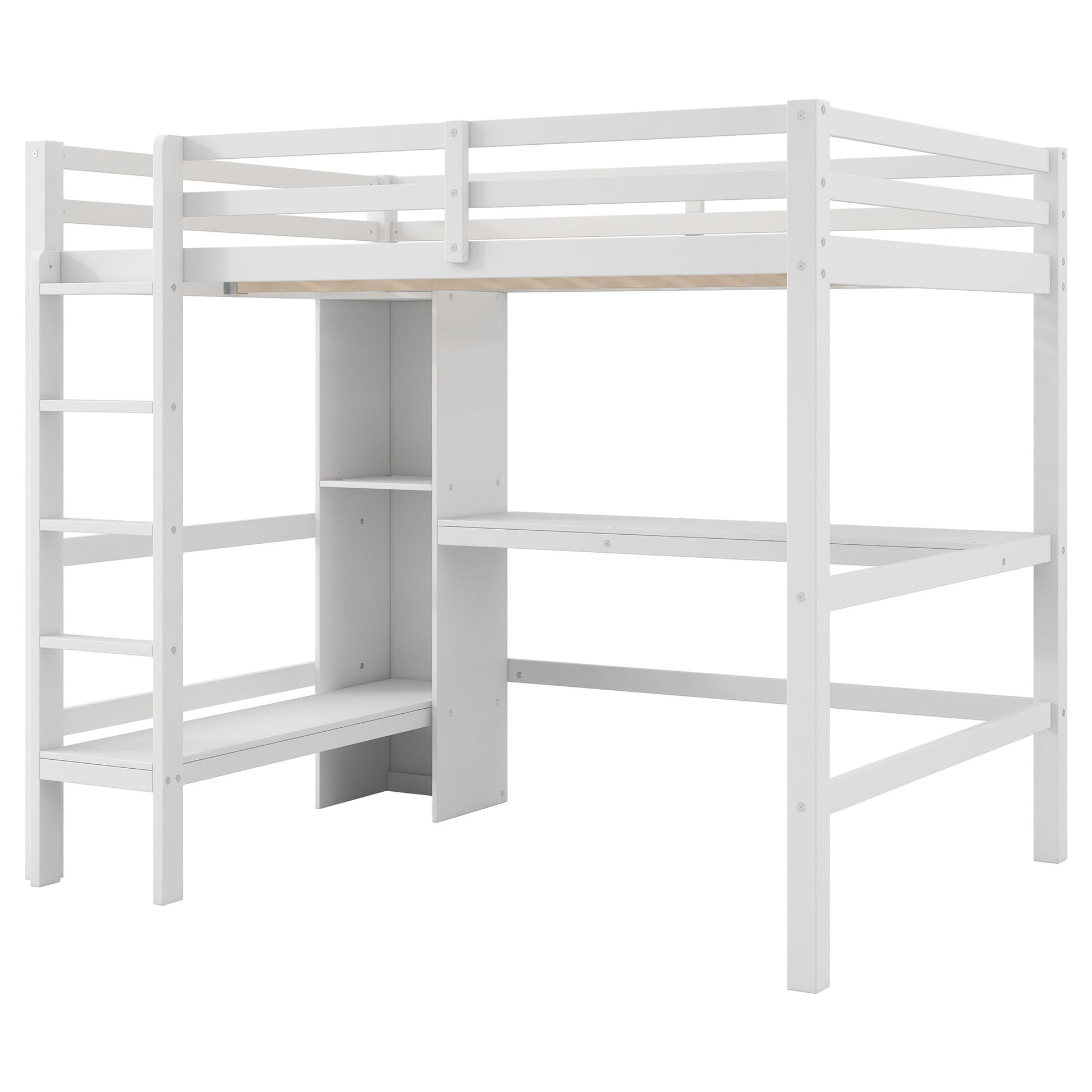 Full Size Loft Bed With Built In Desk And Multifunction Shelves - White