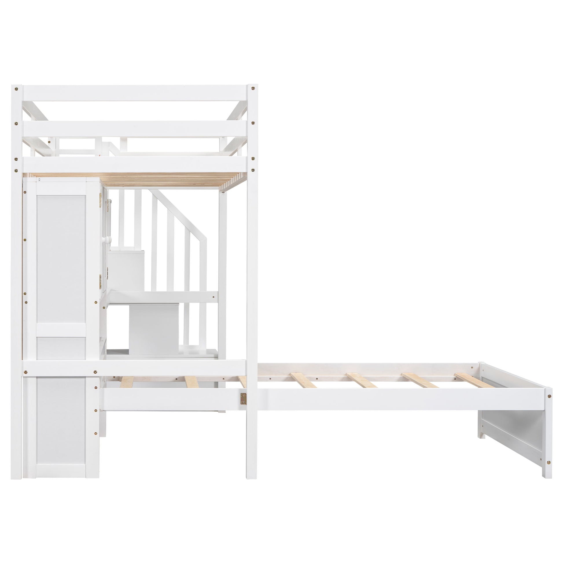 Twin Over Twin Loft Bed With Built In Desk And Staircase - White