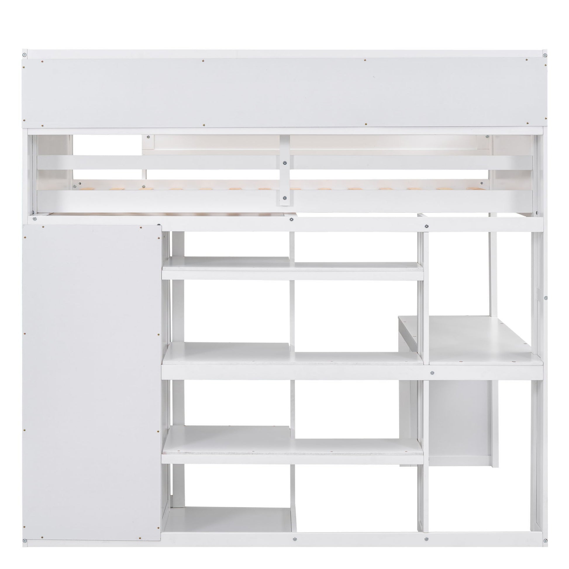 Loft Bed With Built In Desk, Storage Shelves, And Wardrobe